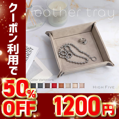 【50%OFFクーポン1,200円!】HIGH FIVE たためるフェイクレザートレイ 正方形 お手入れしやすいPUレザー darkbrown/ダークブラウン