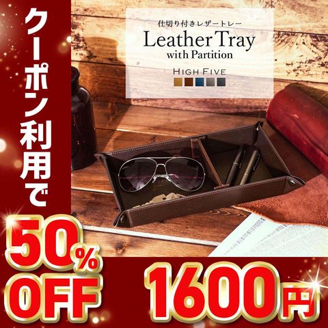 【50%OFFクーポン1,600円!】HIGH FIVE たためる小物入れ 仕切り付き 長方形 フェイクレザートレイ navy/ネイビー