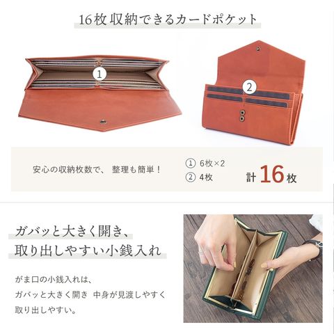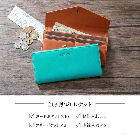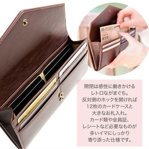RafiCaro カードがたくさん入るがま口長財布 カード収納×16 お手入れしやすいPUレザー darkbrown/ダークブラウン