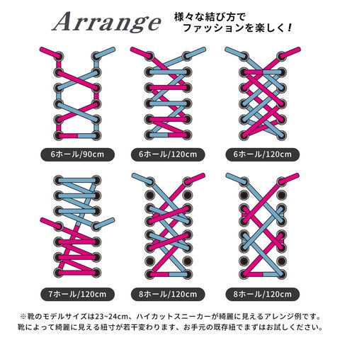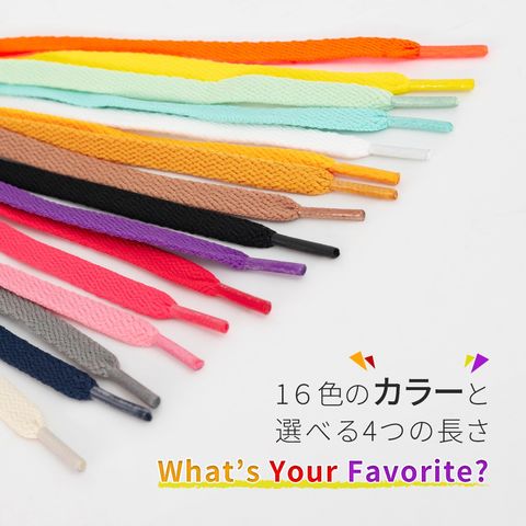100cm (目安5~6穴) /120cm (目安6~8穴) / 140cm (目安7~9穴) / 160cm (8~10穴)※スニーカーはメーカーによりサイズが異なるため、お手元の靴紐の長さを測ったうえでお選びください。