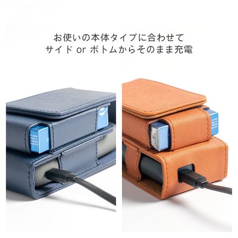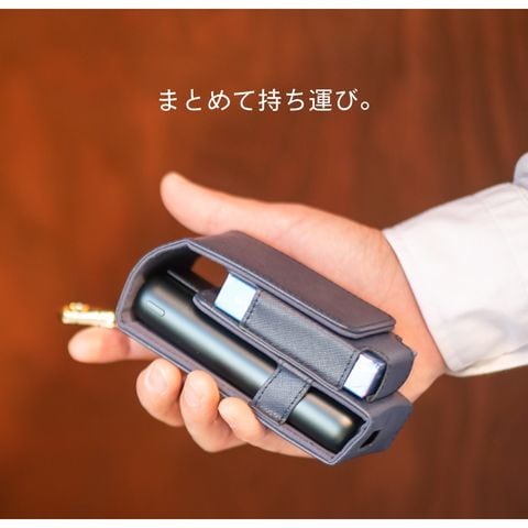 本体とタバコをまとめて持ち運び。本体を収納したまま取り出せる構造で、ストレスを感じません。充電ももちろん収納したまま。