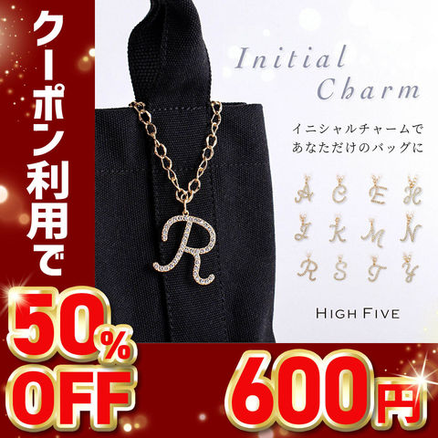【50%OFFクーポン600円!】HIGH FIVE ラインストーンイニシャルチャーム バッグチャーム s