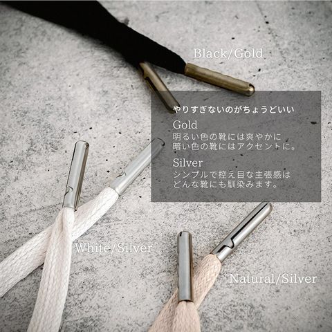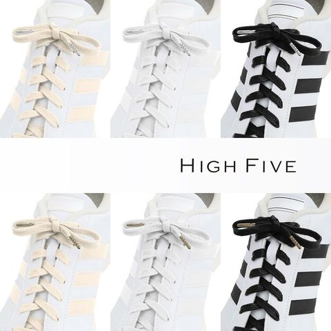 HIGH FIVE 靴紐 平紐 蝋引き シューレース 金属チップ 付き 2本セット 1足分 120cm/black/ブラック gold/ゴールド