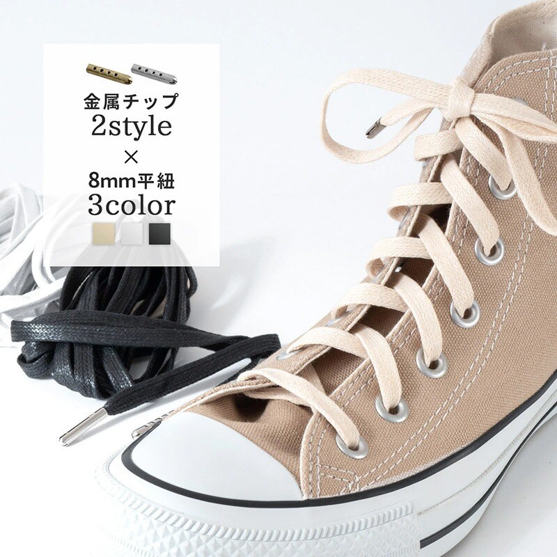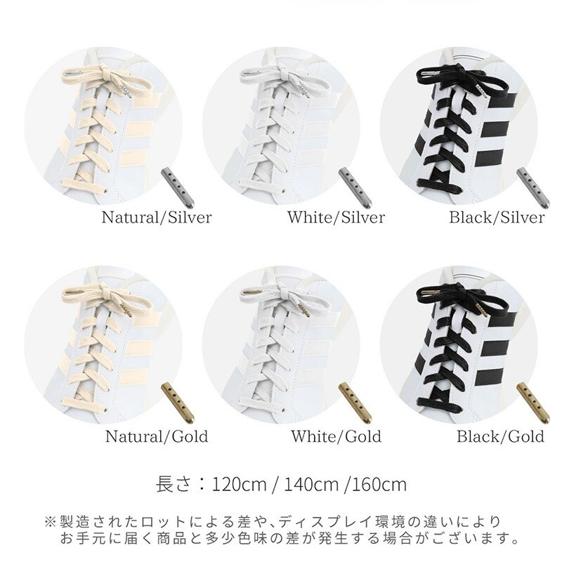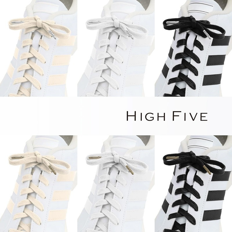 HIGH FIVE 靴紐 平紐 蝋引き シューレース 金属チップ 付き 2本セット 1足分 140cm/black/ブラック silver/シルバー