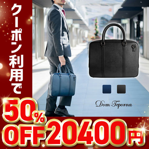 【50%OFFクーポン20,400円!】DomTeporna Italy コンパクトな牛革ビジネスバッグ A4サイズ navy/ネイビー