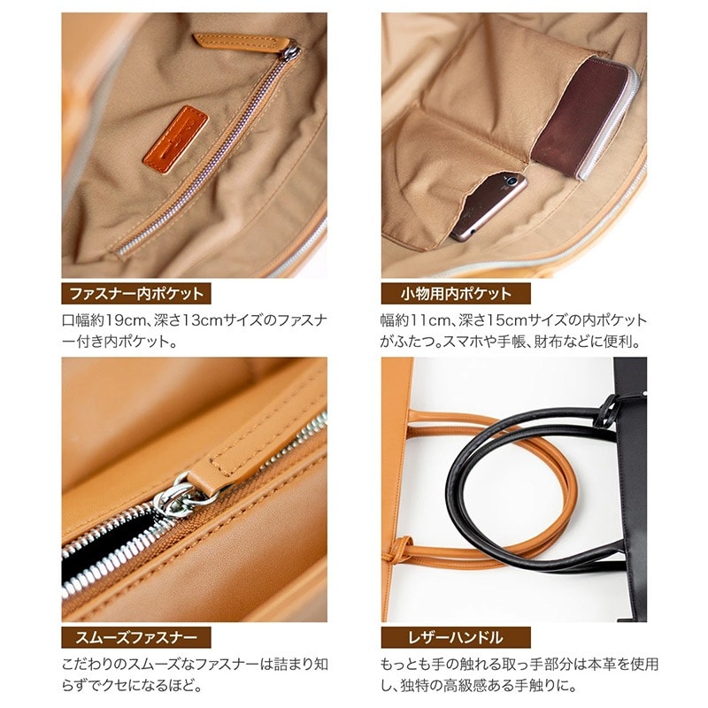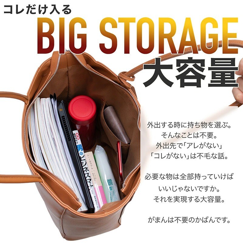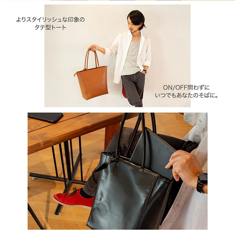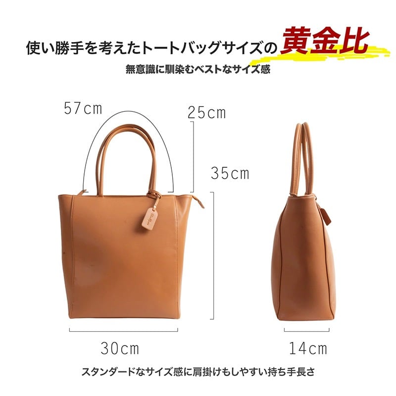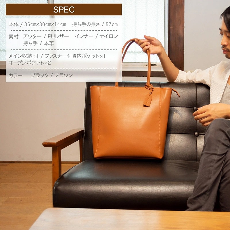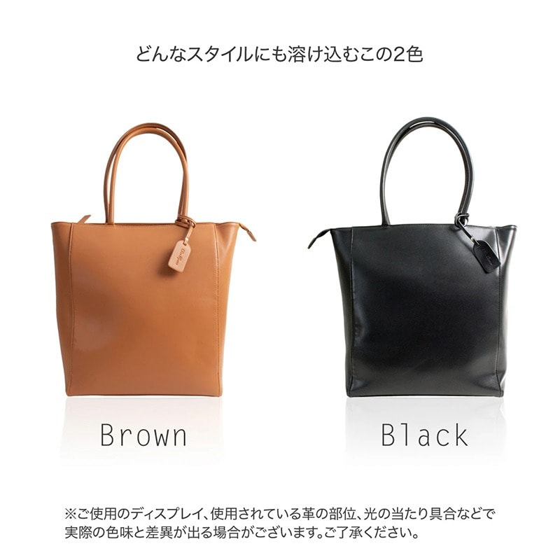 Dom Teporna 縦型トートバッグ お手入れしやすいPUレザー 大容量 A4 brown/ブラウン