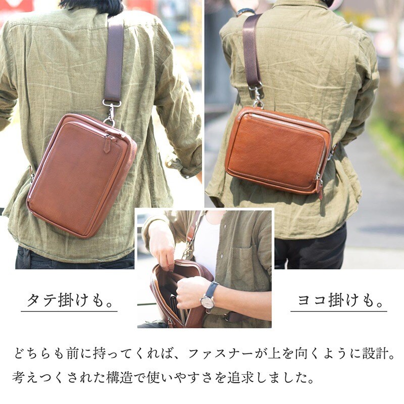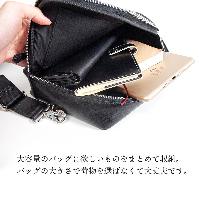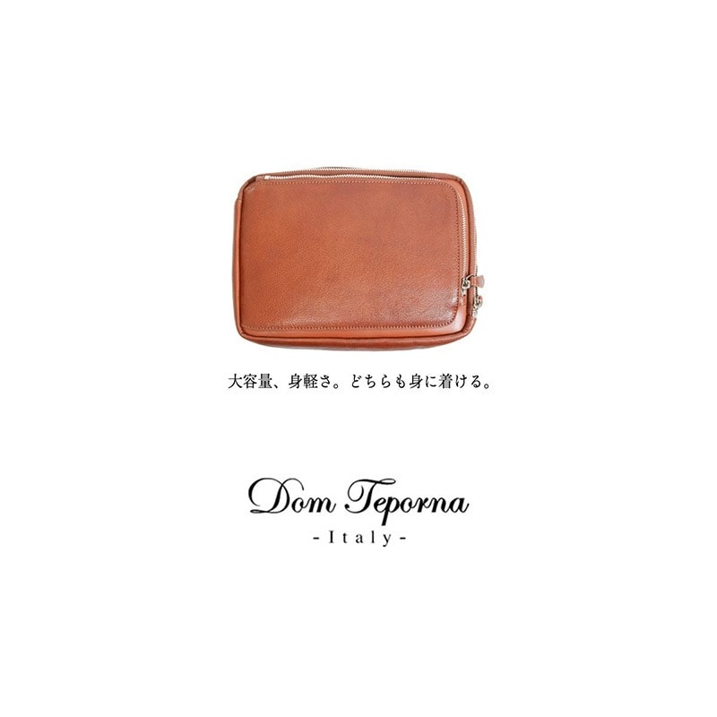 Dom Teporna Italy ボディバッグ イタリアンレザー ペットボトル収納可能 black/ブラック