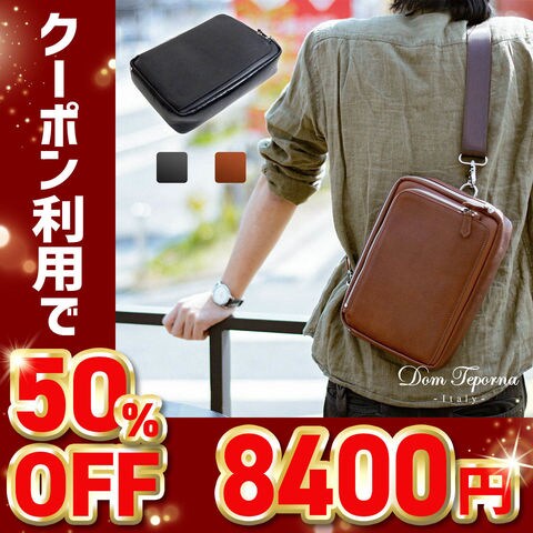 【50%OFFクーポン8,400円!】Dom Teporna Italy ボディバッグ イタリアンレザー ペットボトル収納可能 darkbrown/ダークブラウン