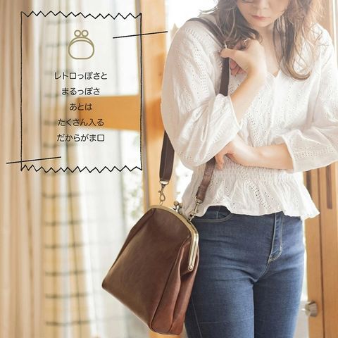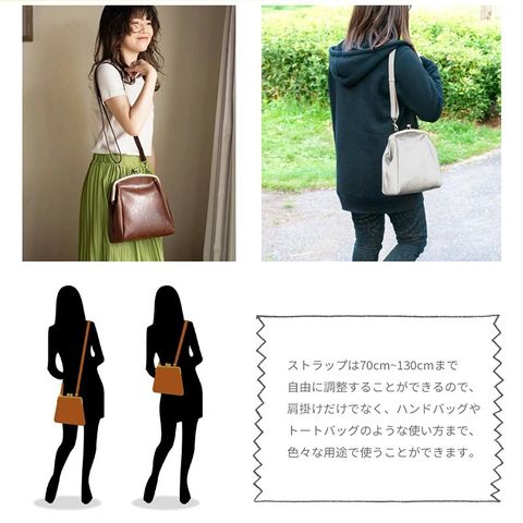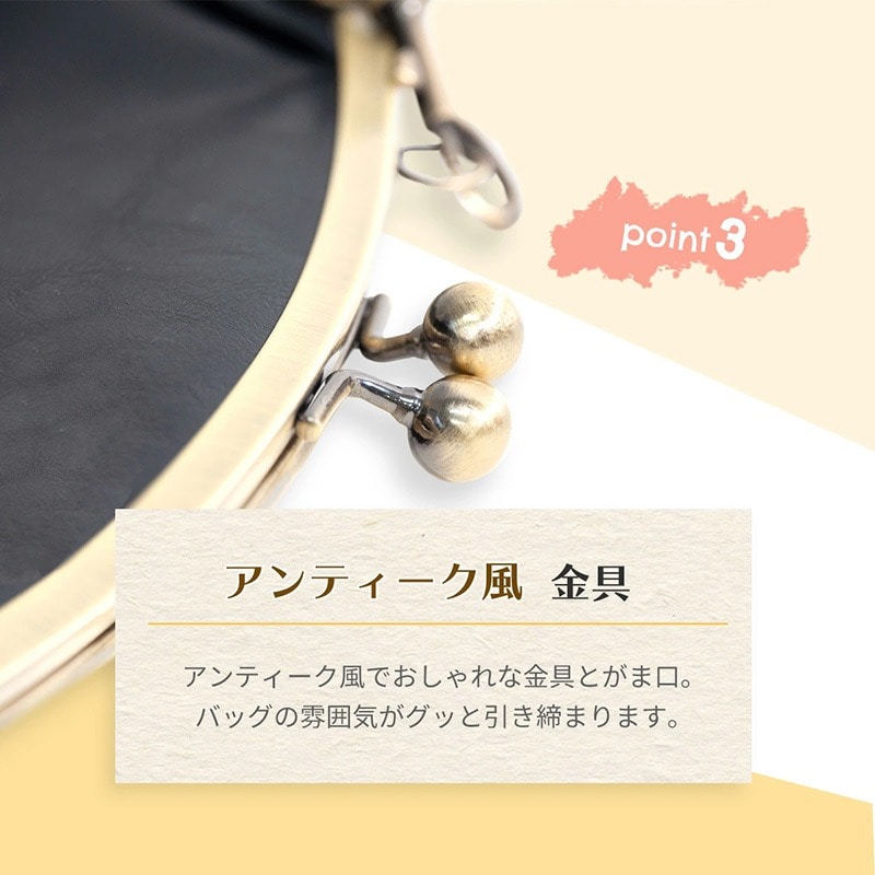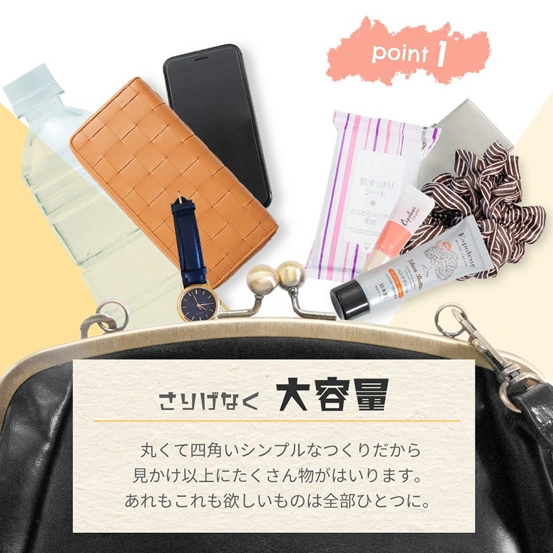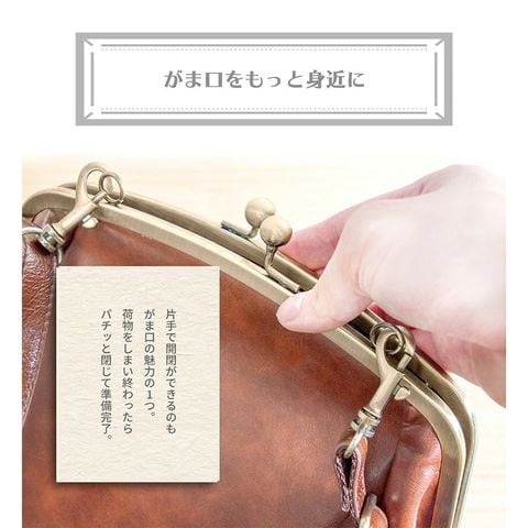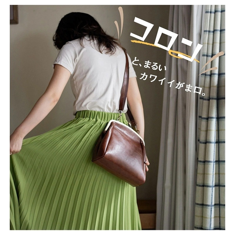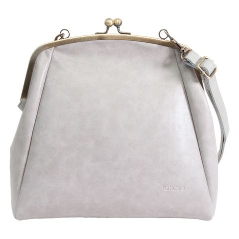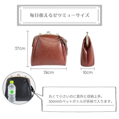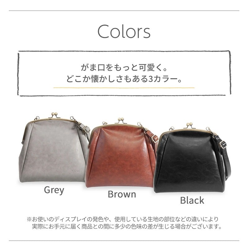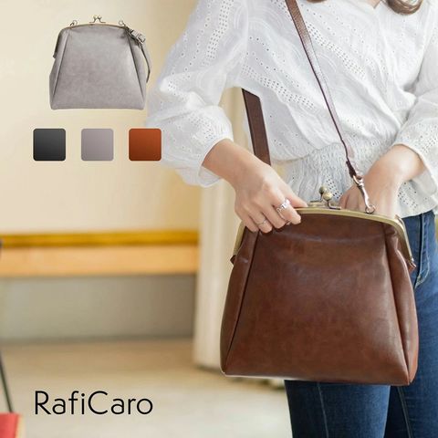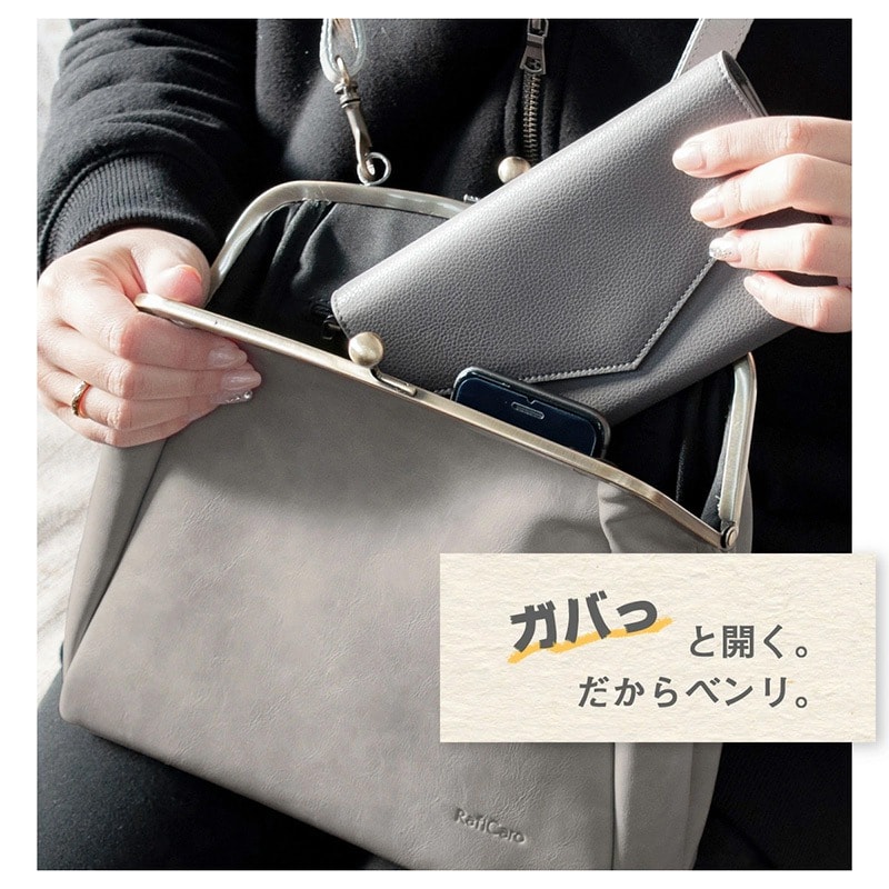 RafiCaro がま口 本革 ショルダーバッグ ペットボトル収納可能 grey/グレー