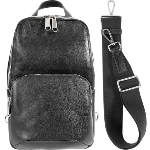 Dom Teporna Italy ボディバッグ 全面本革イタリアンレザー 背面ポケット 財布機能付き black/ブラック