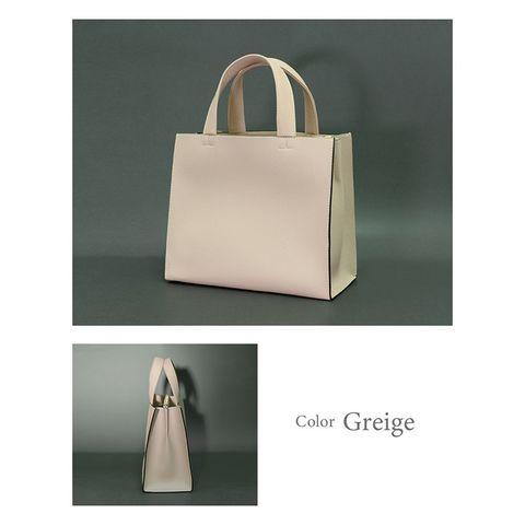 MALTA マチが大きなミニハンドバッグ 自立可能 お手入れしやすいPUレザー greige/グレージュ