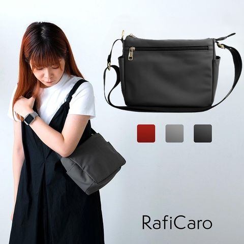 RafiCaro 軽量ナイロン製ショルダーバッグ 撥水 財布機能付き 底面ICカード black/ブラック