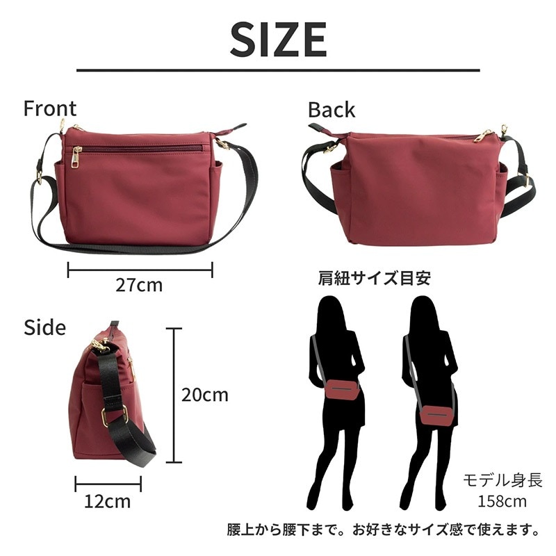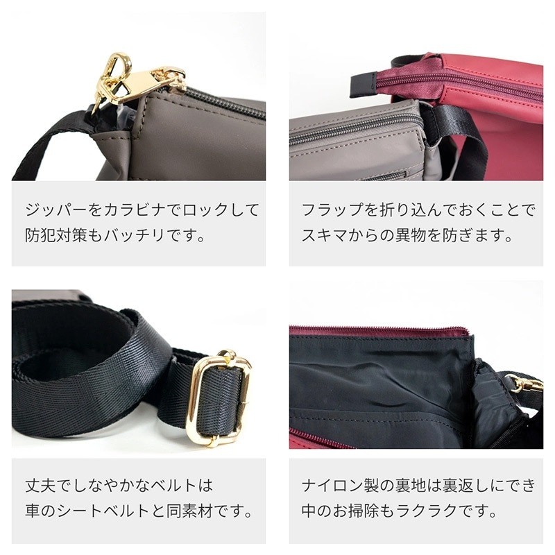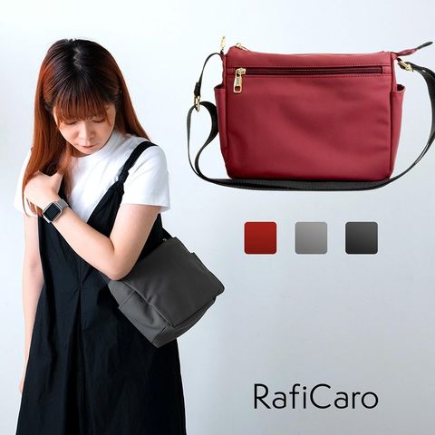 RafiCaro 軽量ナイロン製ショルダーバッグ 撥水 財布機能付き 底面ICカード red/レッド