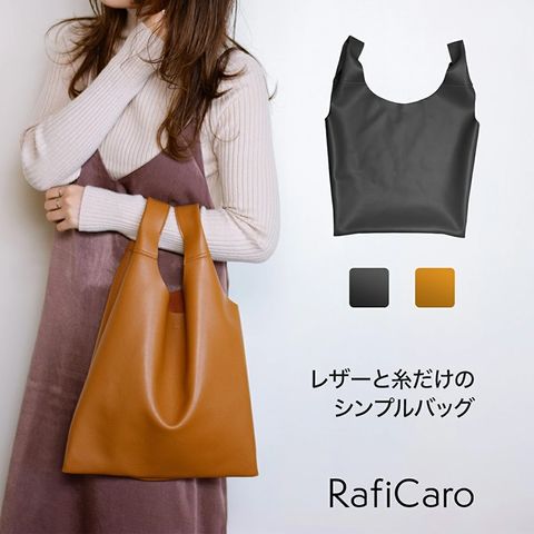 RafiCaro 牛革一枚革トートバッグ レザー ミニトート マルシェバッグ black/ブラック