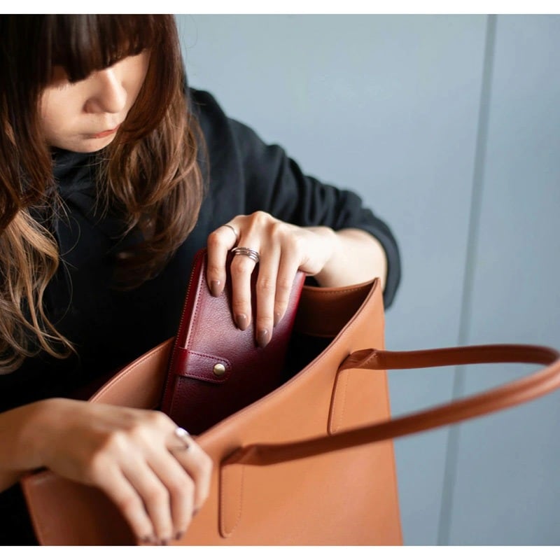 MALTA 自立する大容量トートバッグ A4書類が横に入る 縦型 etoupe/エトゥープ