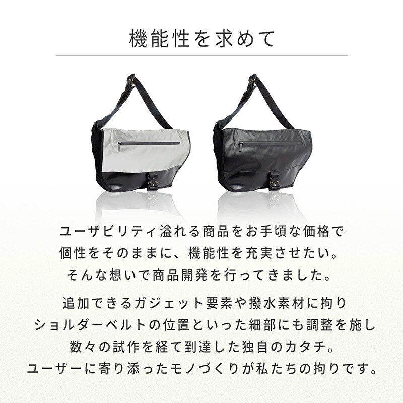 Dom Teporna ズレない大容量ボディバッグ 撥水素材 メッセンジャーバッグ silver/シルバー