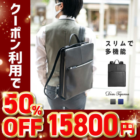 【50%OFFクーポン15,800円!】Dom Teporna 薄型本革ビジネスリュック メンズ PCリュック black/ブラック