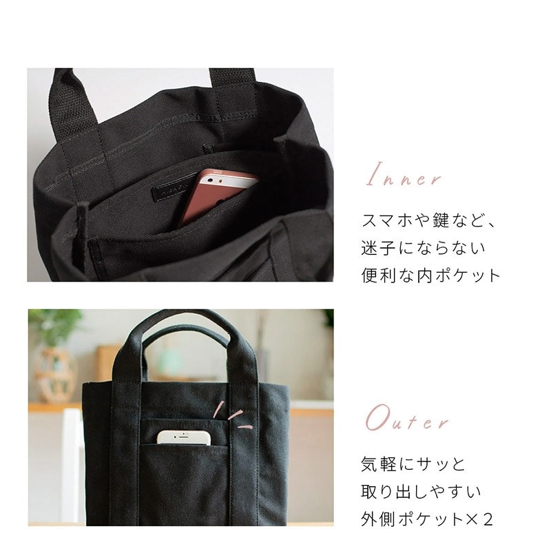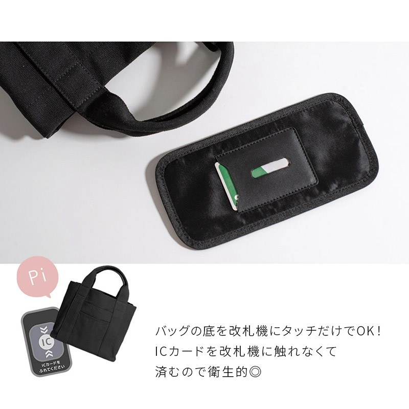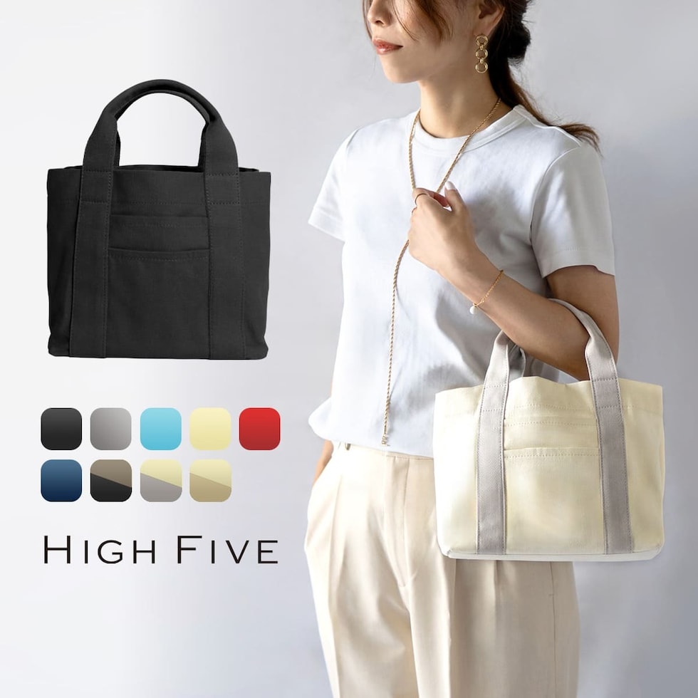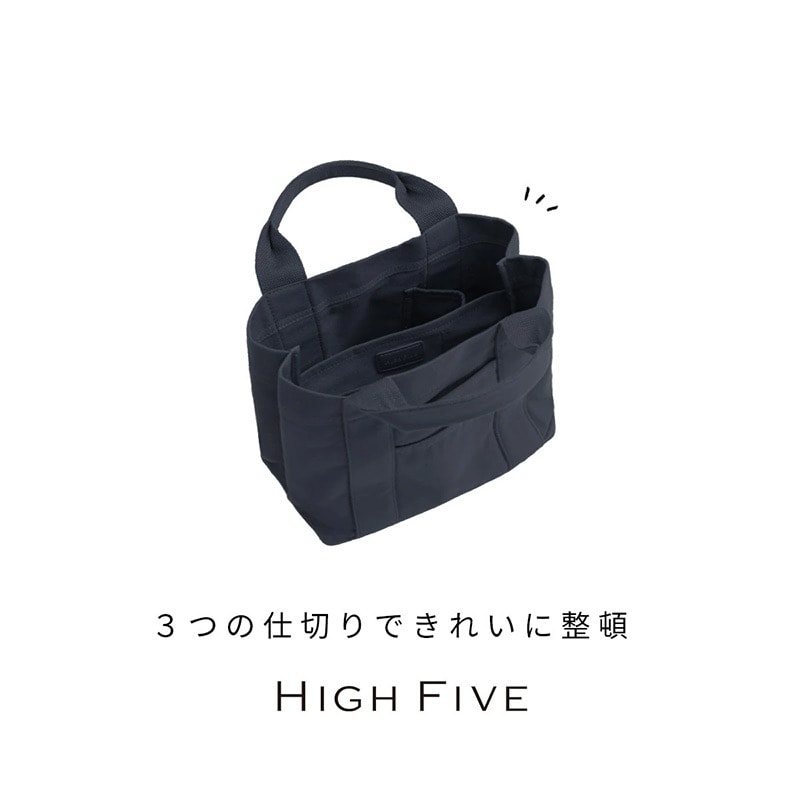 HIGH FIVE マチが大きなミニトートバッグ 仕切り付き 底にICカードポケット付き black/ブラック
