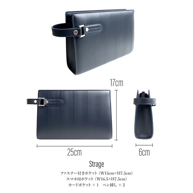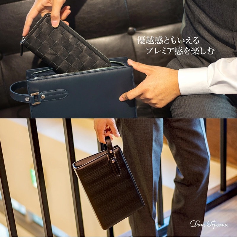 【12月10日限定ポイント30倍】Dom Teporna 牛革クラッチバッグ 冠婚葬祭におすすめ 財布機能付き navy/ネイビー