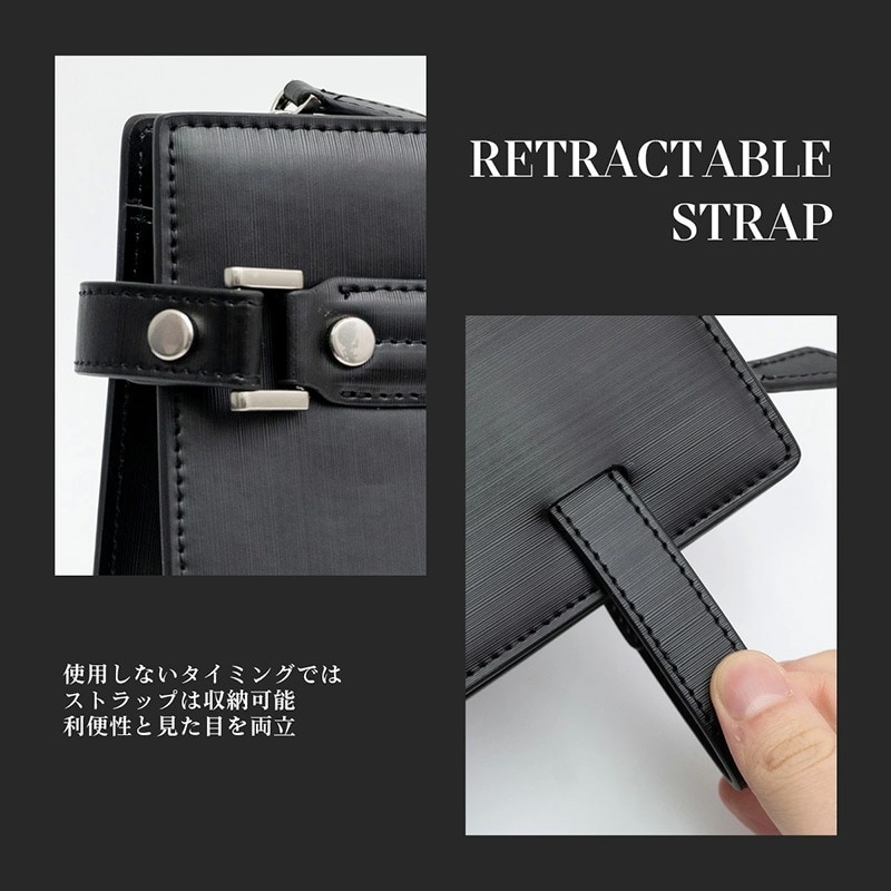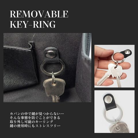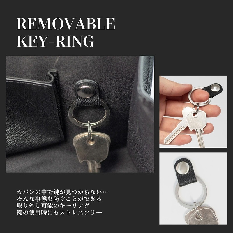 バッグ内部はファスナー付きポケットやスマートフォンも収納可能なマチ付きポケットなど、小物収納スペースが充実。ペンホルダーに取外し可能なキーリングも付属し、使いやすさにこだわりました。機能性とデザイン性を兼ね備えた、大人のための硬派なアイテムです。