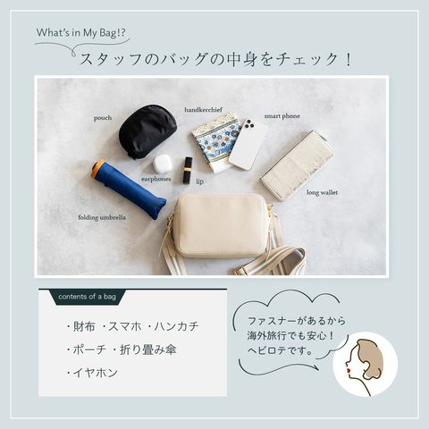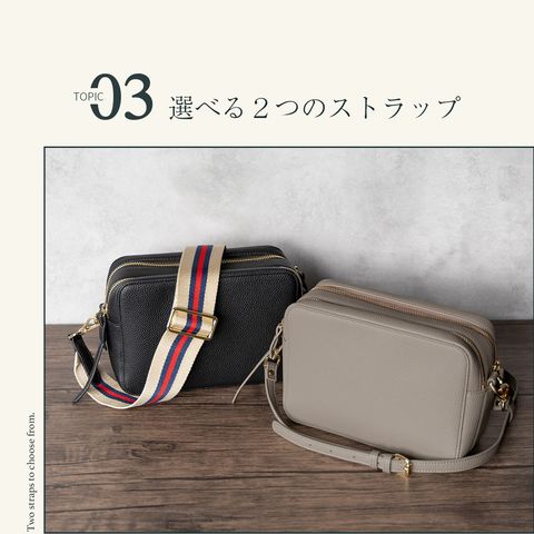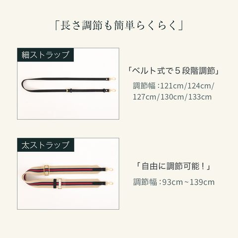 ストラップチェンジ+長さ調節で、まるで別のバッグのように雰囲気が変わります。