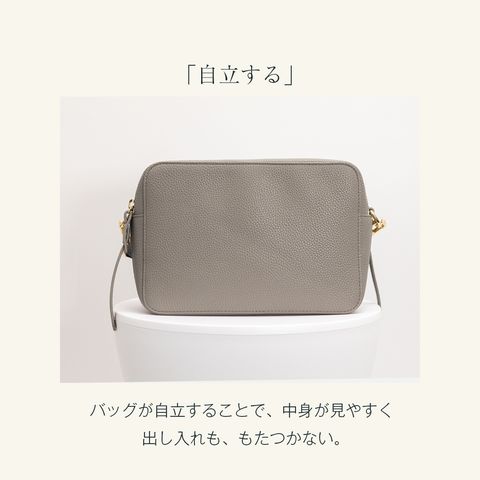 上品なスクエアフォルムは型崩れしにくく、しっかりと自立します。