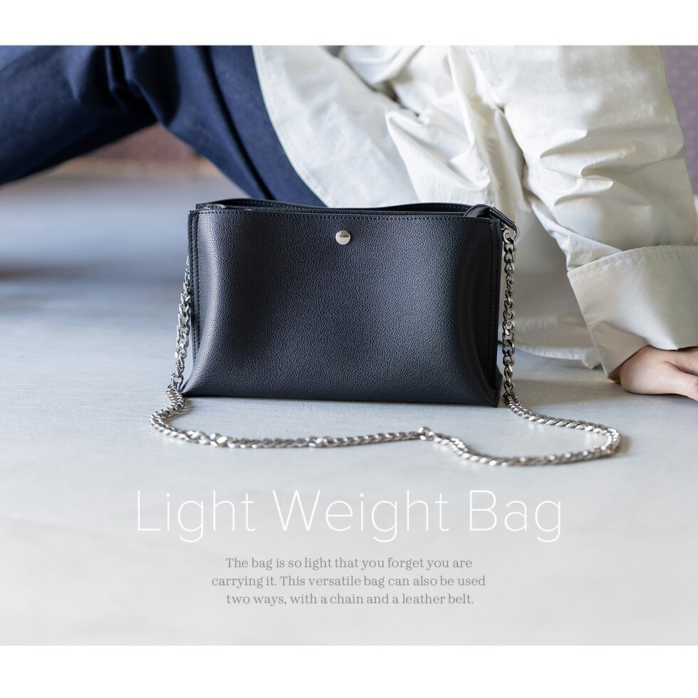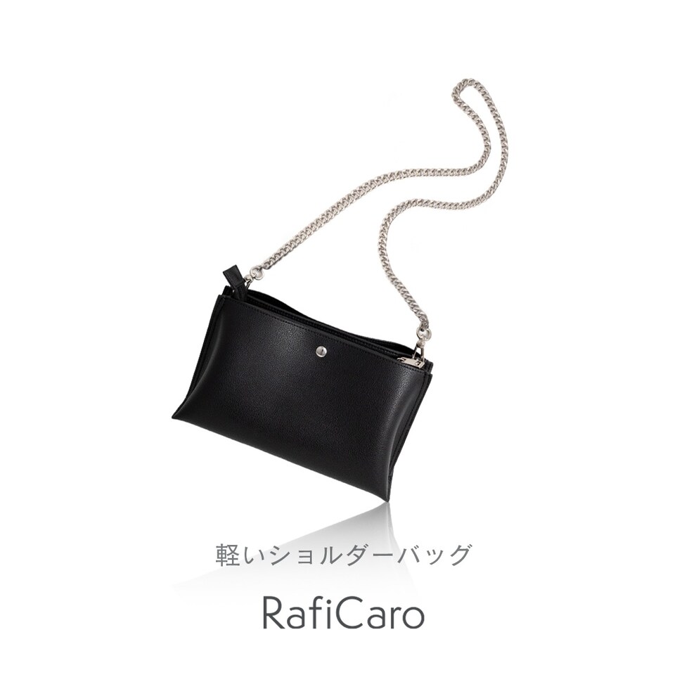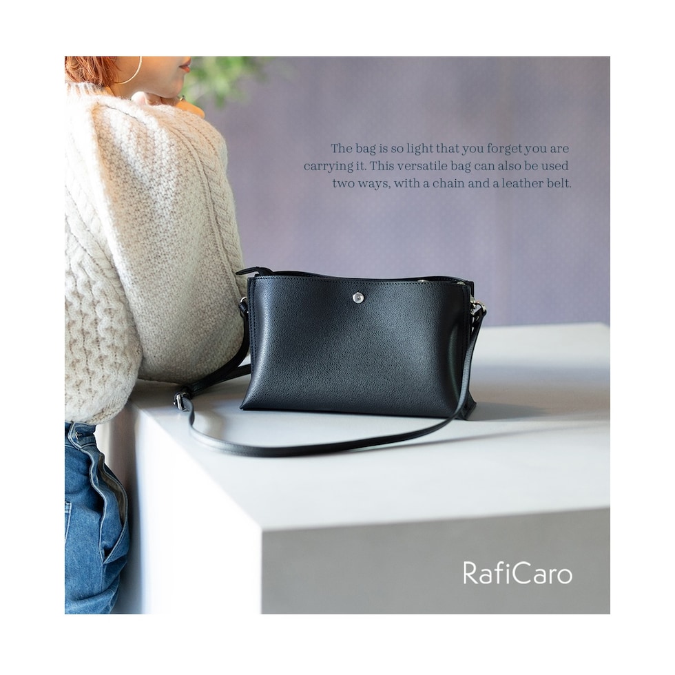 RafiCaro ショルダーバッグ ストラップ2タイプ付き PUレザー チェーンベルト 軽量 多収納 black/ブラック