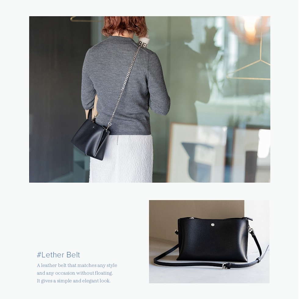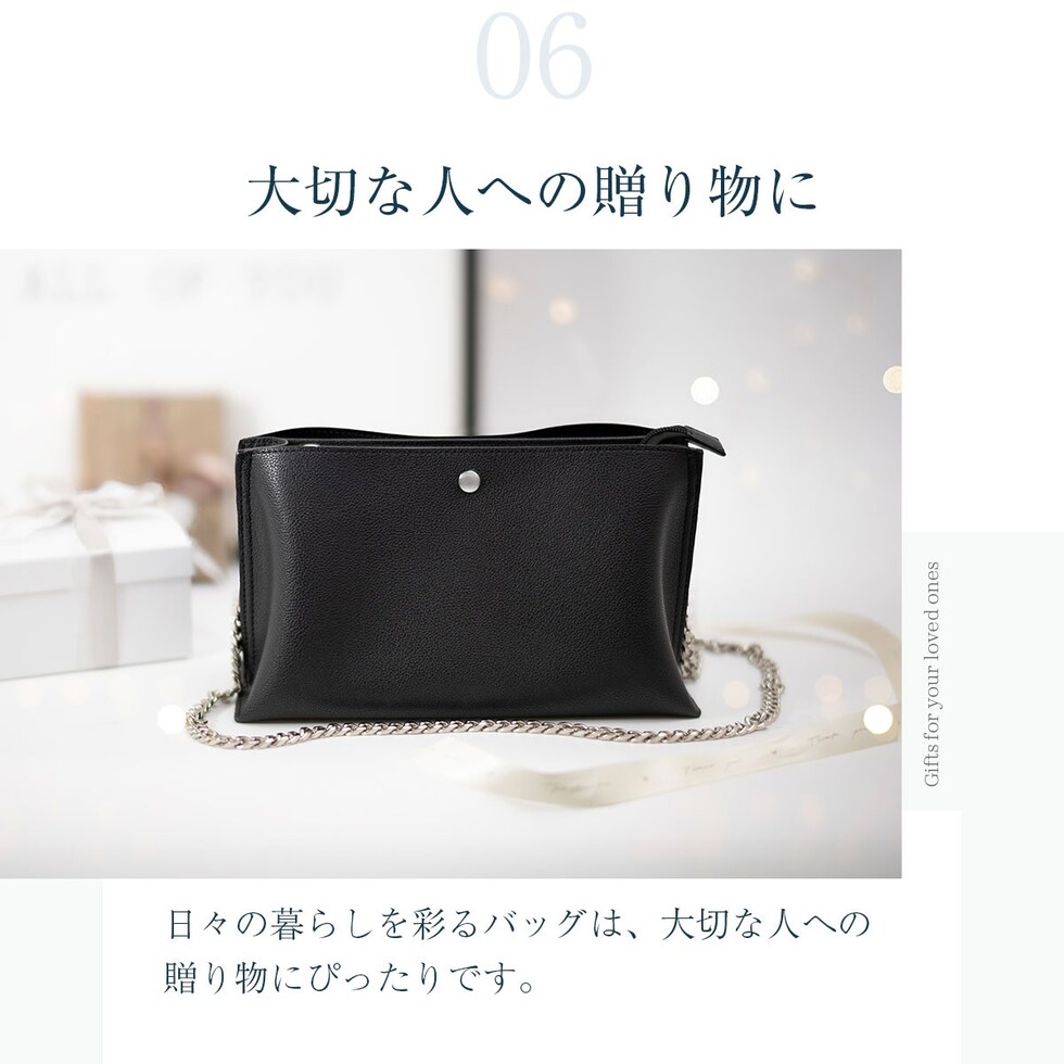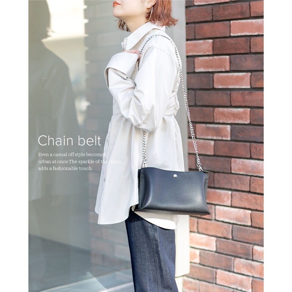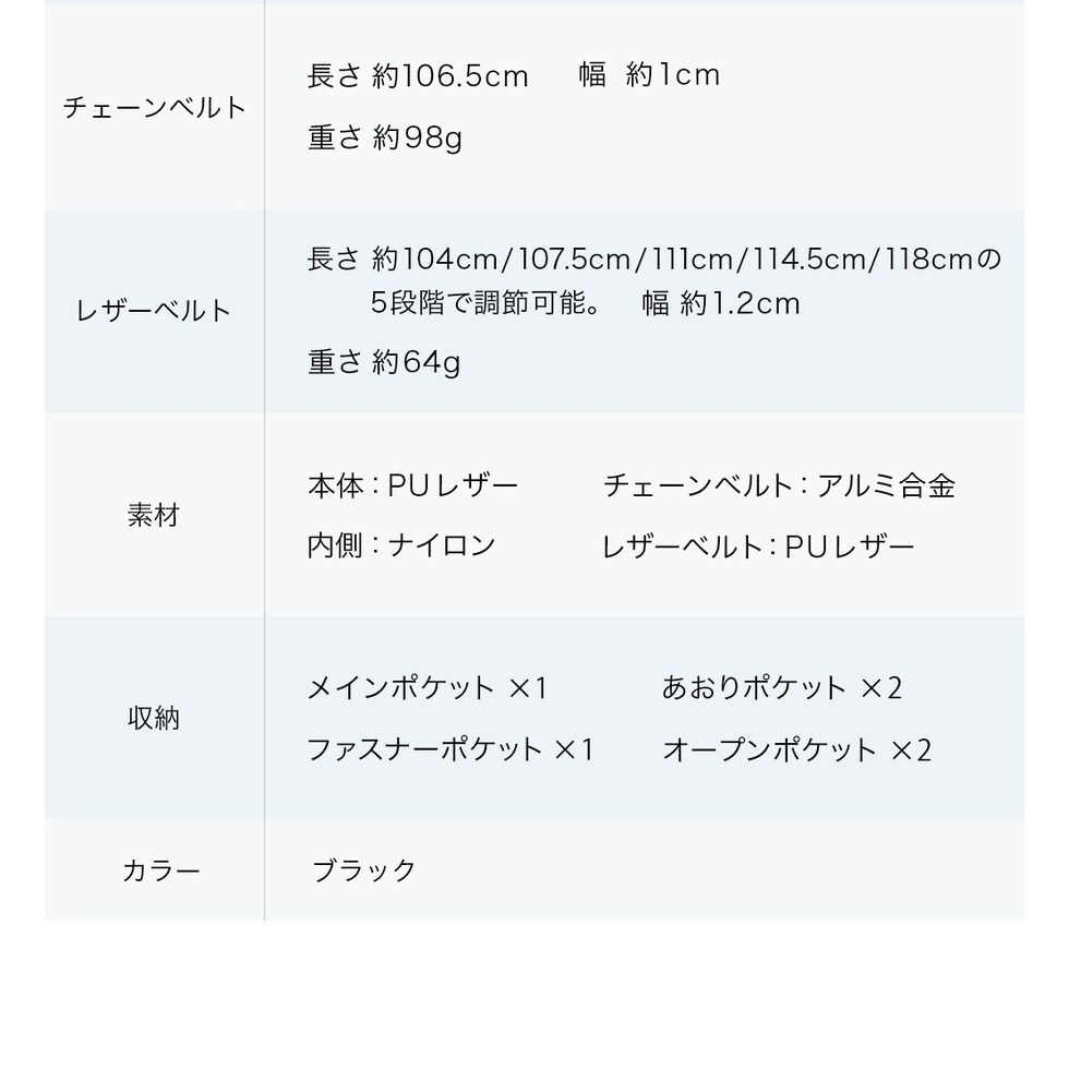 RafiCaro ショルダーバッグ ストラップ2タイプ付き PUレザー チェーンベルト 軽量 多収納 black/ブラック