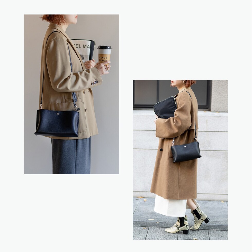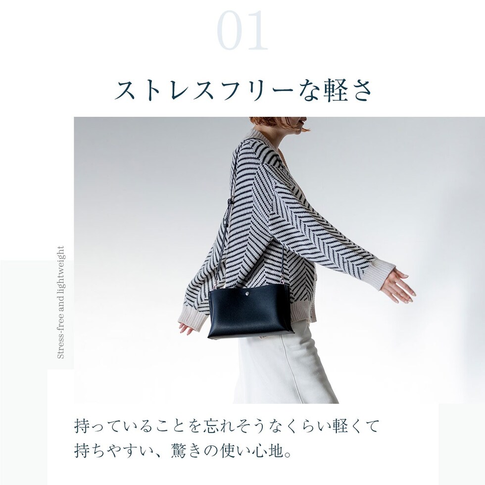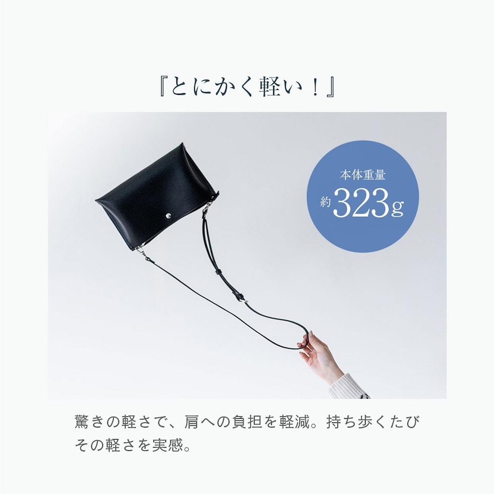 アクセスしやすい外ポケットと便利な内ポケットと収納力もありながら、持ちやすい軽さに仕上げています。