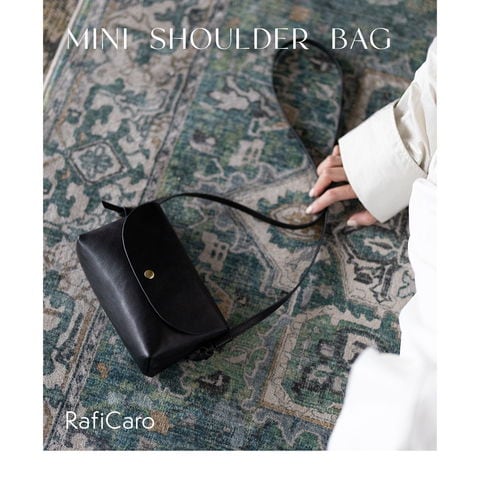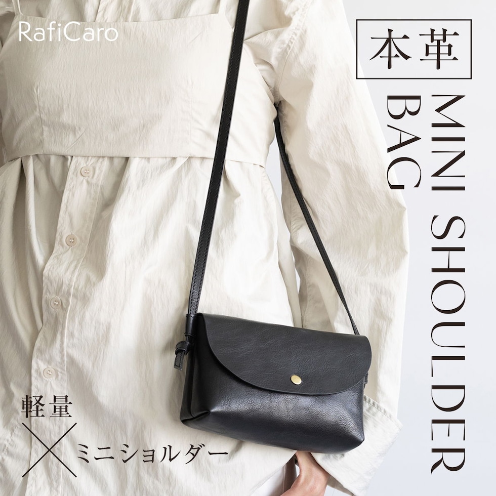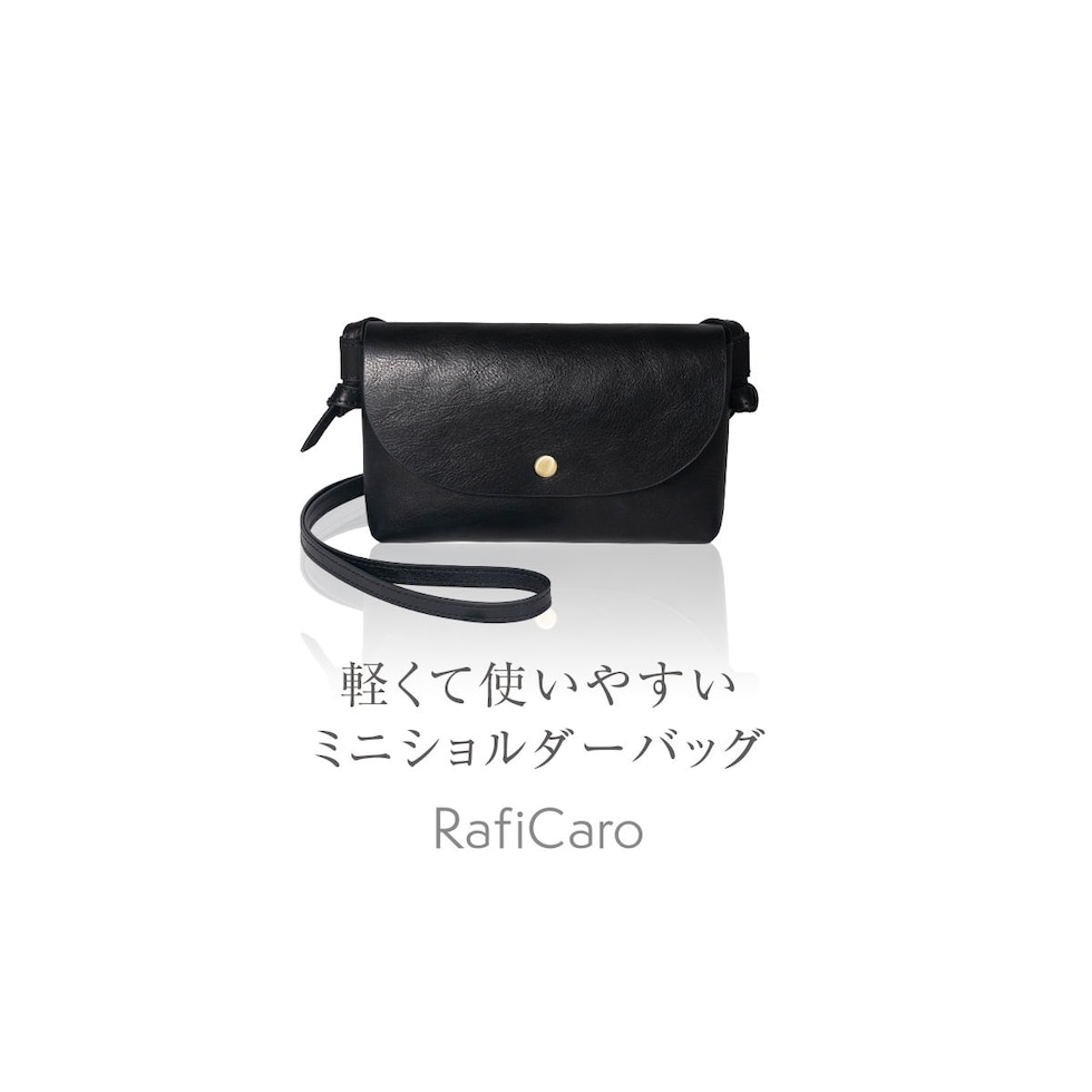 RafiCaro ミニショルダーバッグ 本革イタリアンレザー 小さめ シンプル 斜めがけ 軽い 小さい ポーチ コンパクト black/ブラック