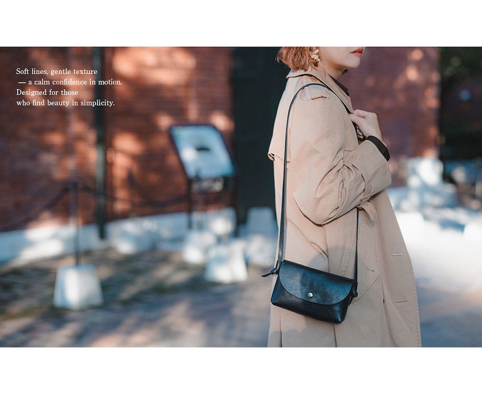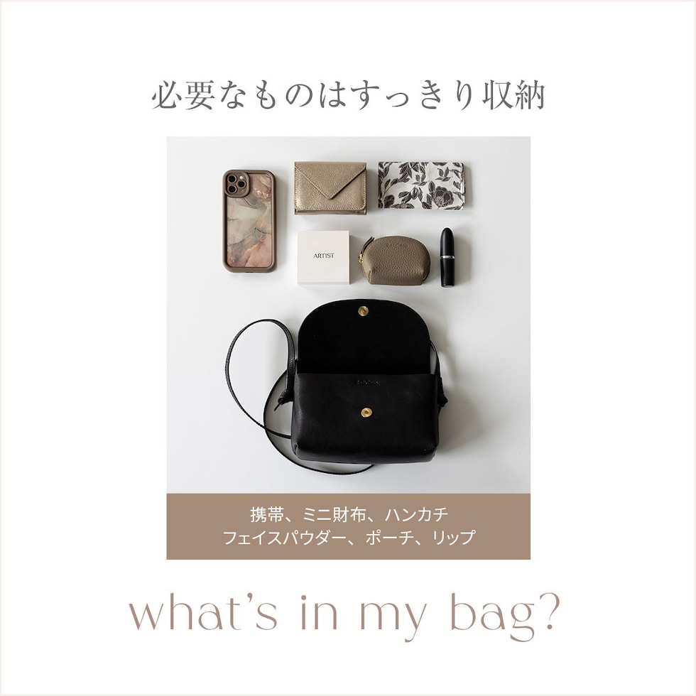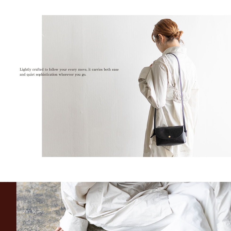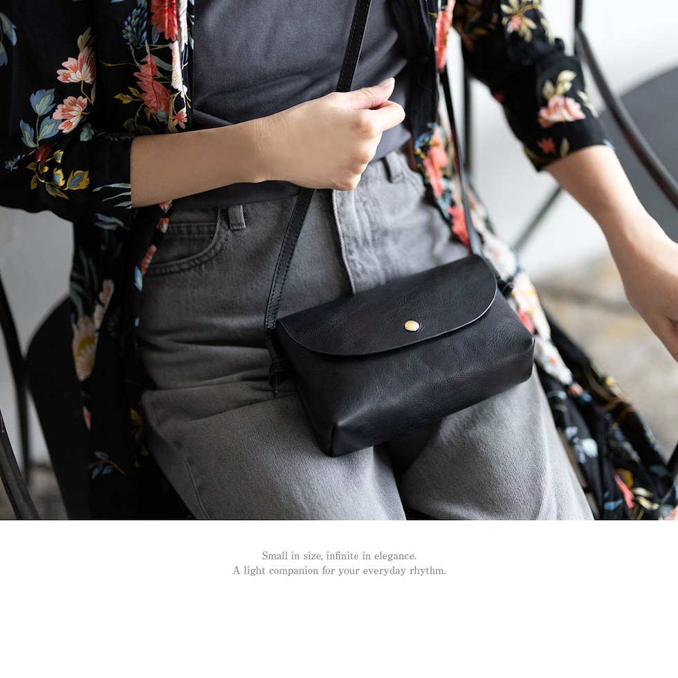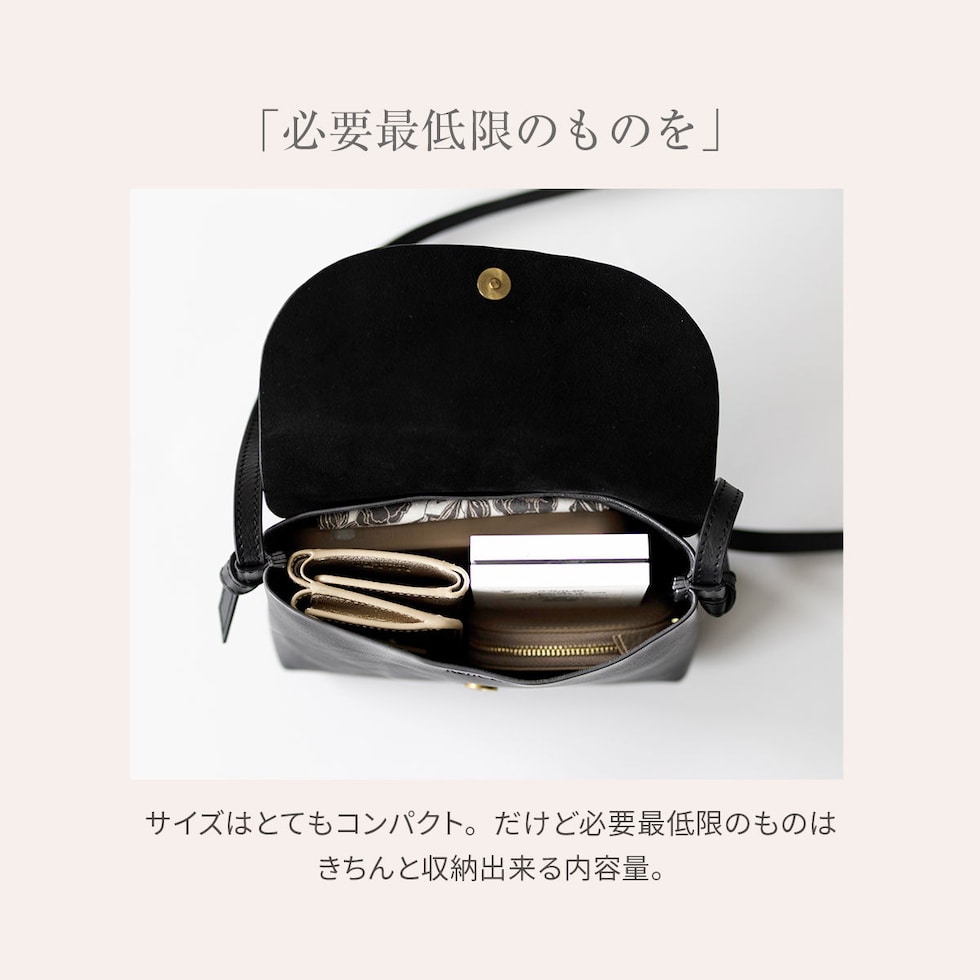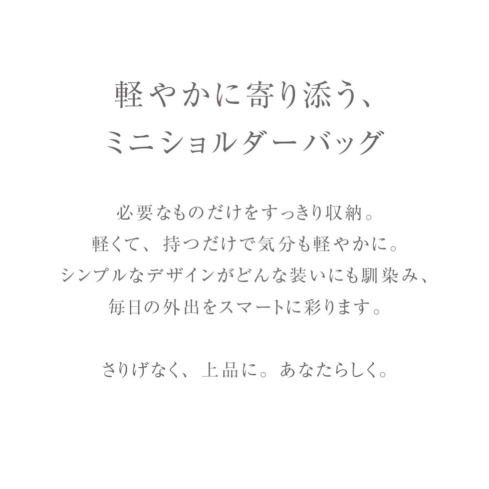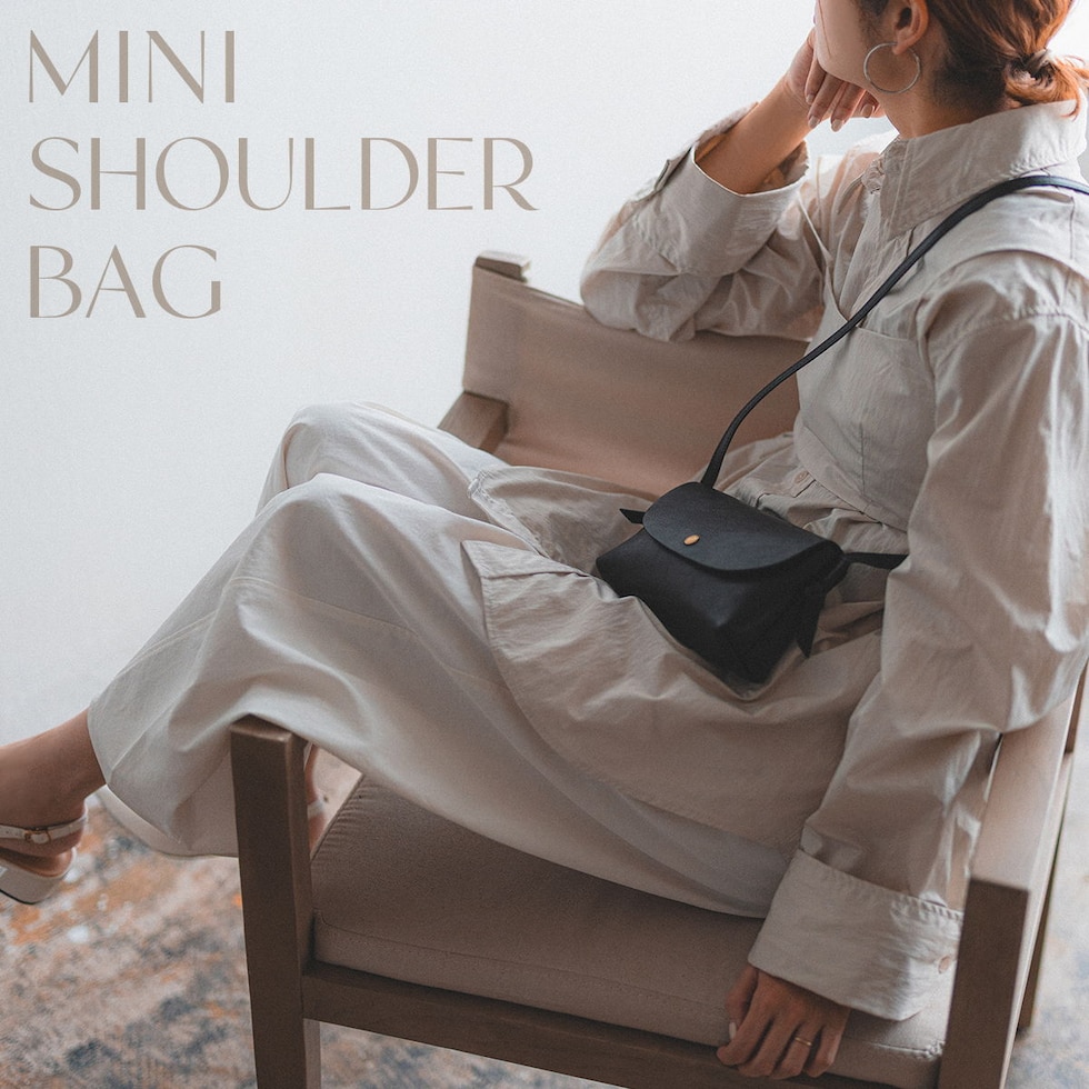 どんな装いにも馴染み、季節を選ばず使えるミニショルダーバッグです。コンパクトサイズでもマチをしっかりとっているので、ちょっとしたお出かけに必要なものは十分収納可能です。