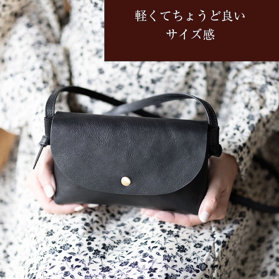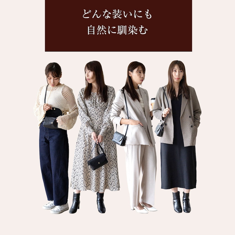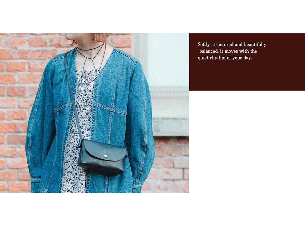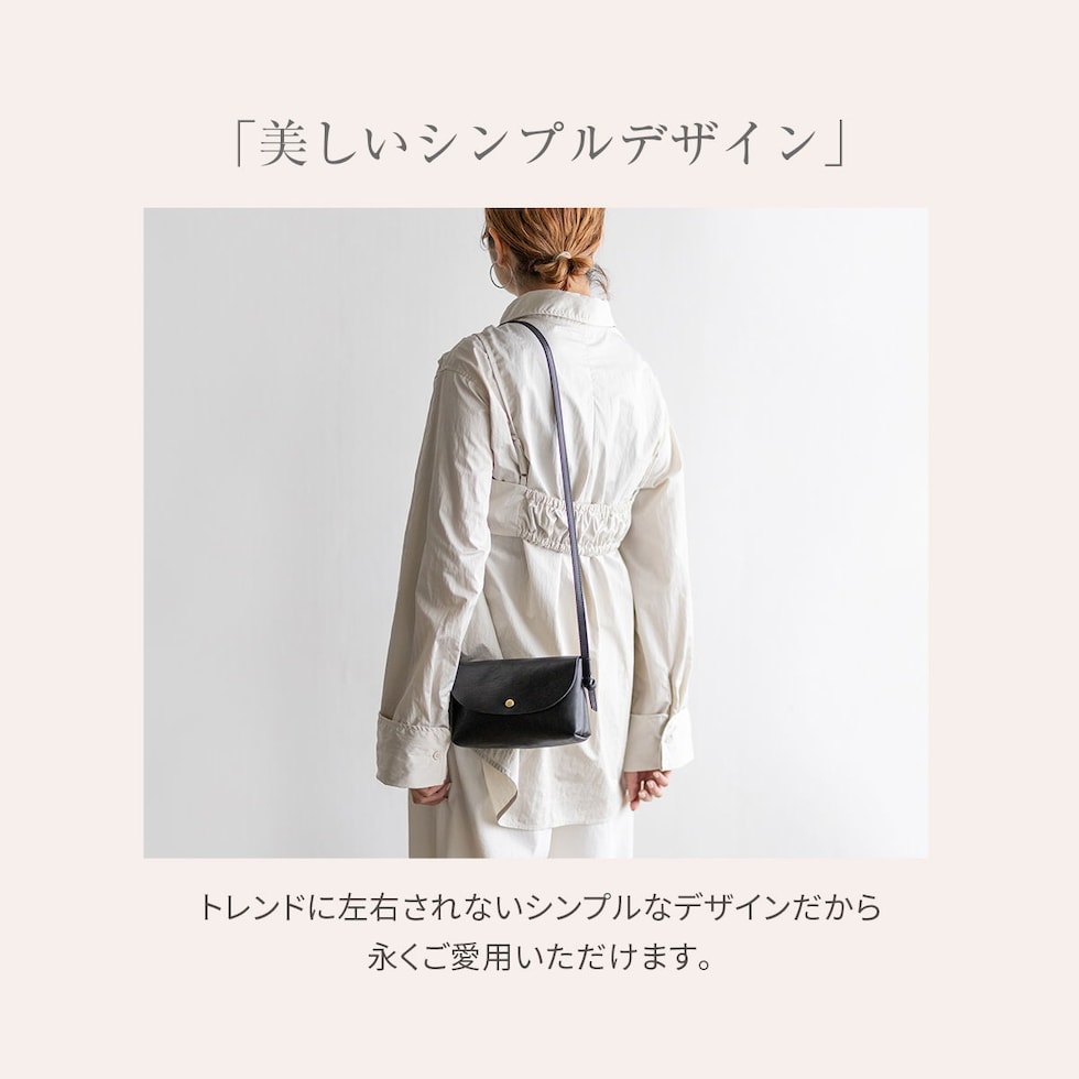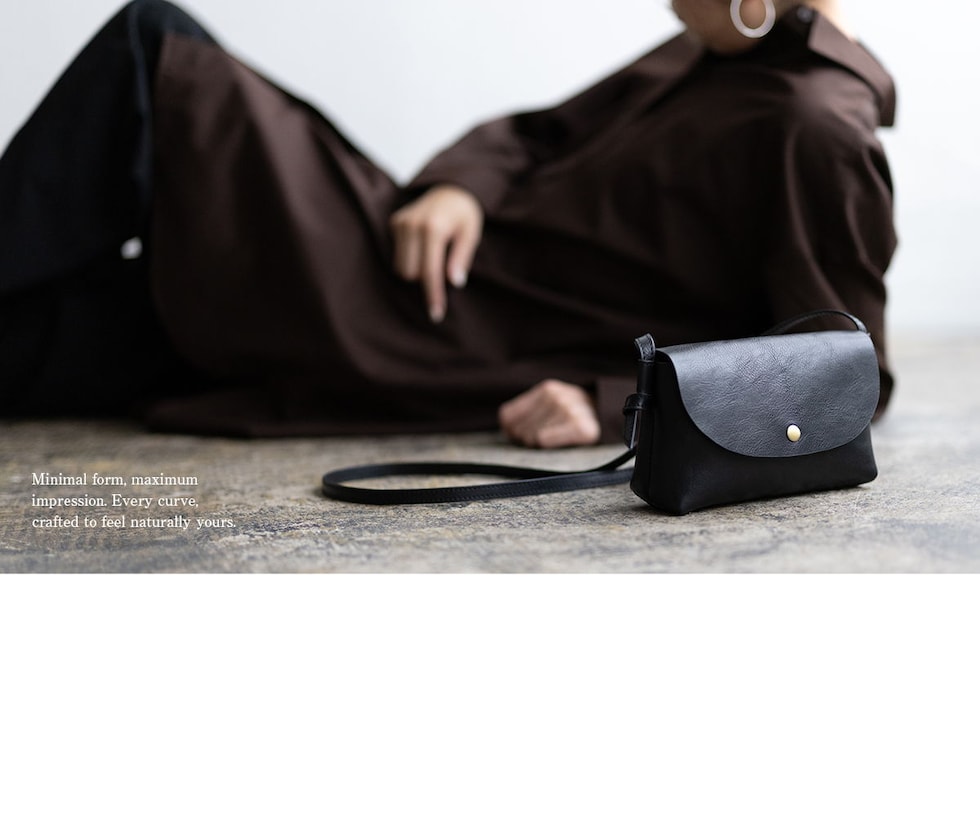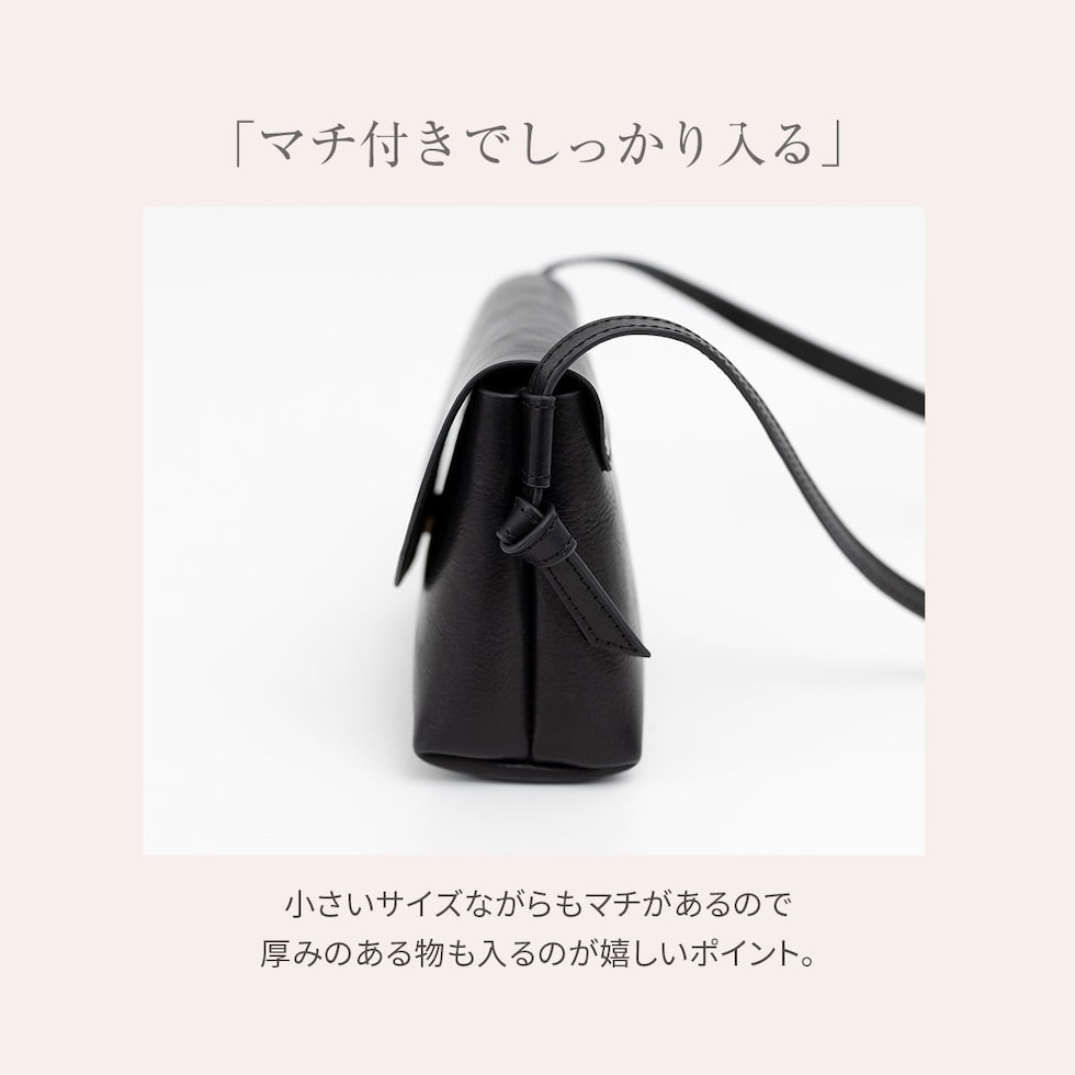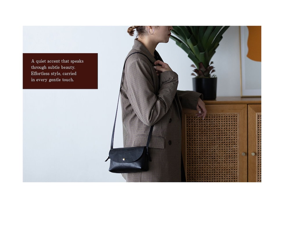 どんな装いにも馴染み、季節を選ばず使えるミニショルダーバッグです。コンパクトサイズでもマチをしっかりとっているので、ちょっとしたお出かけに必要なものは十分収納可能です。