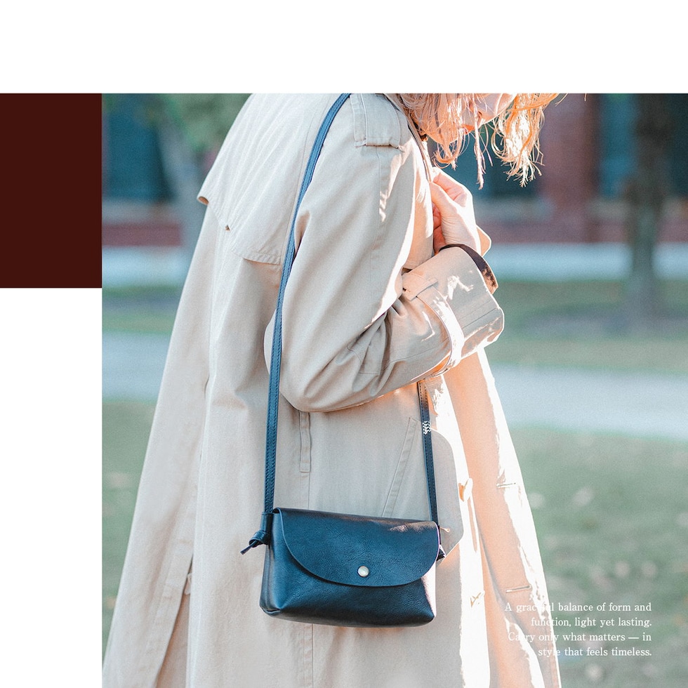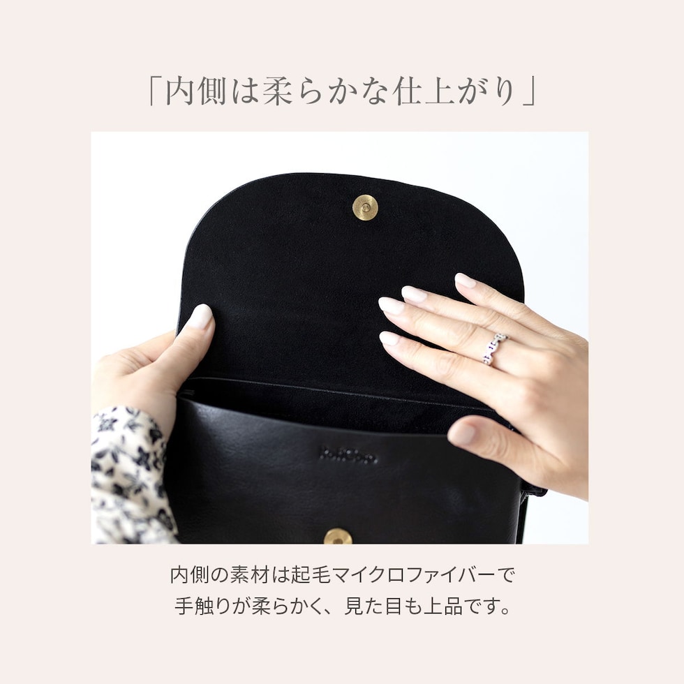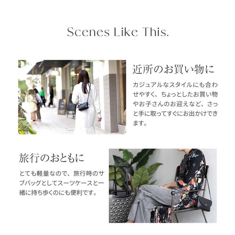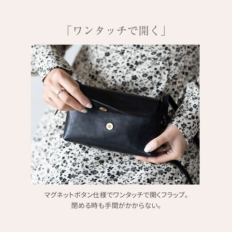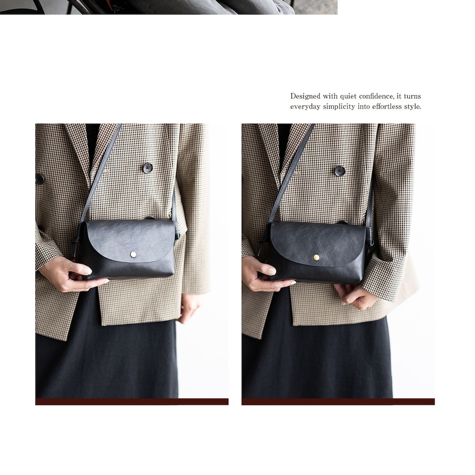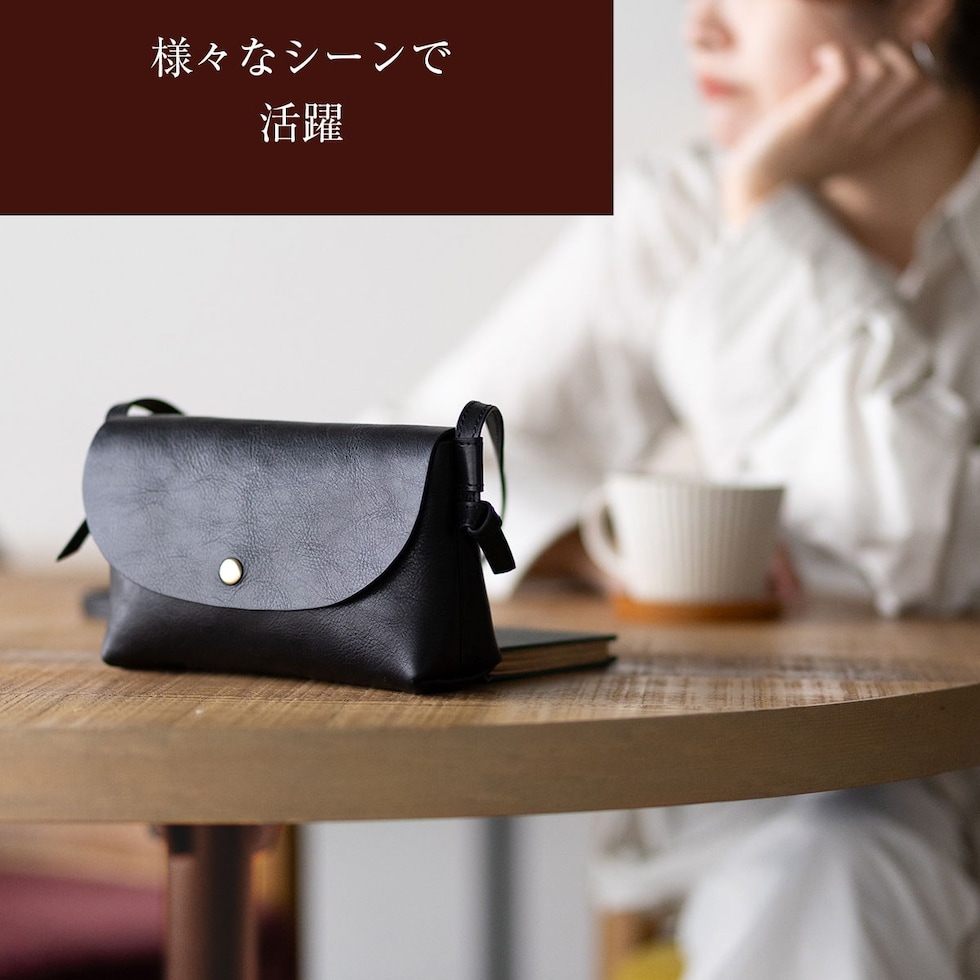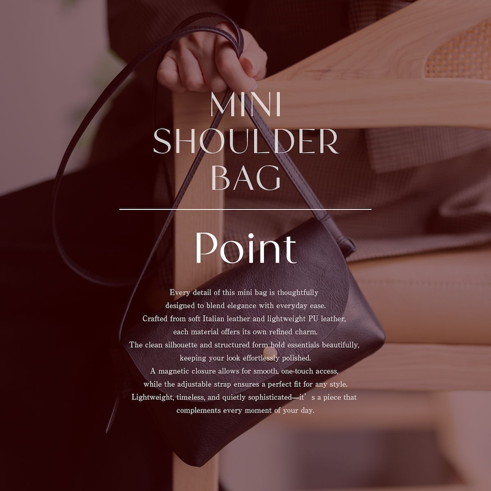 どんな装いにも馴染み、季節を選ばず使えるミニショルダーバッグです。コンパクトサイズでもマチをしっかりとっているので、ちょっとしたお出かけに必要なものは十分収納可能です。