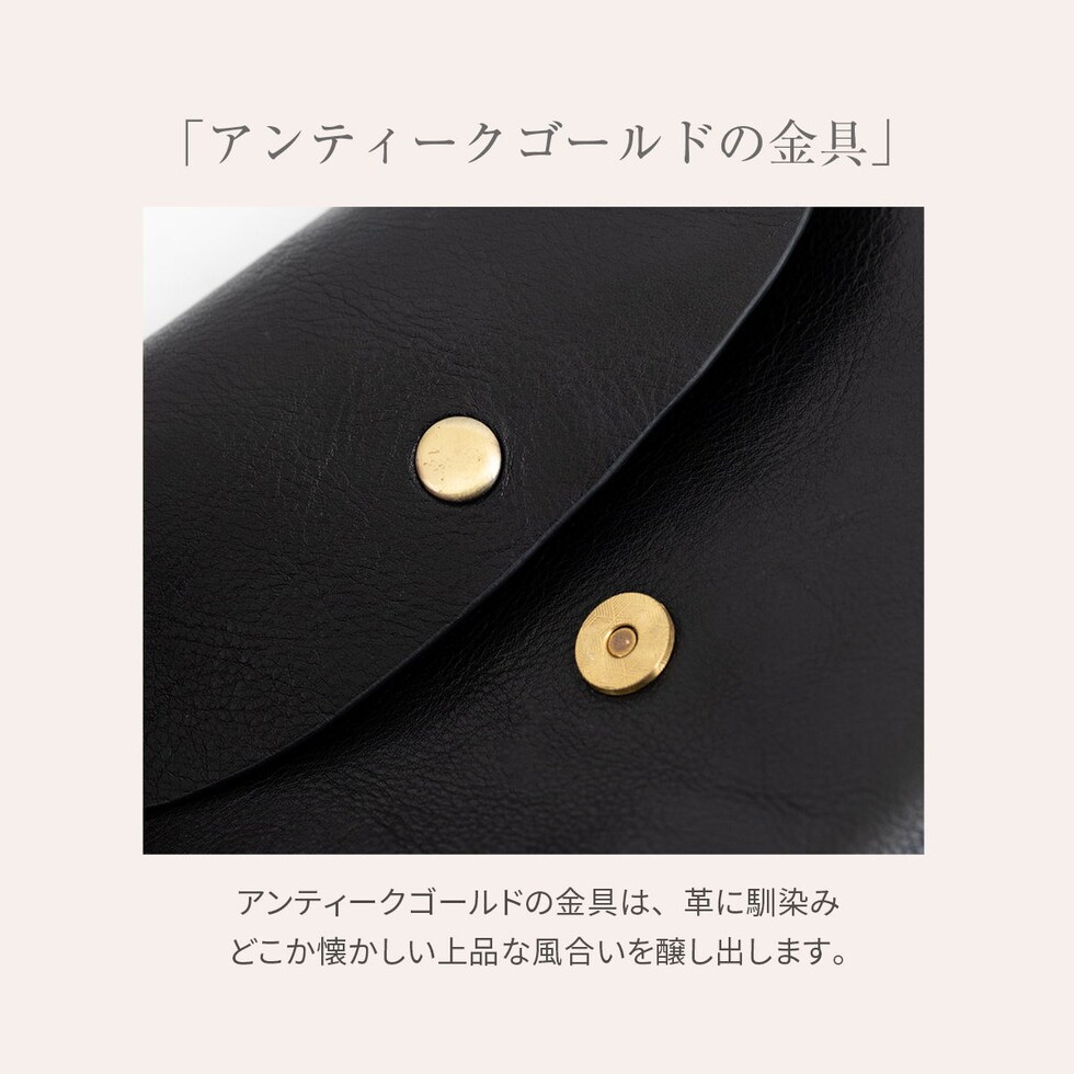 柔らかな手触りの本革イタリアンレザーを使用。ボタンの金具はアンティークゴールドで上品なアクセントに。