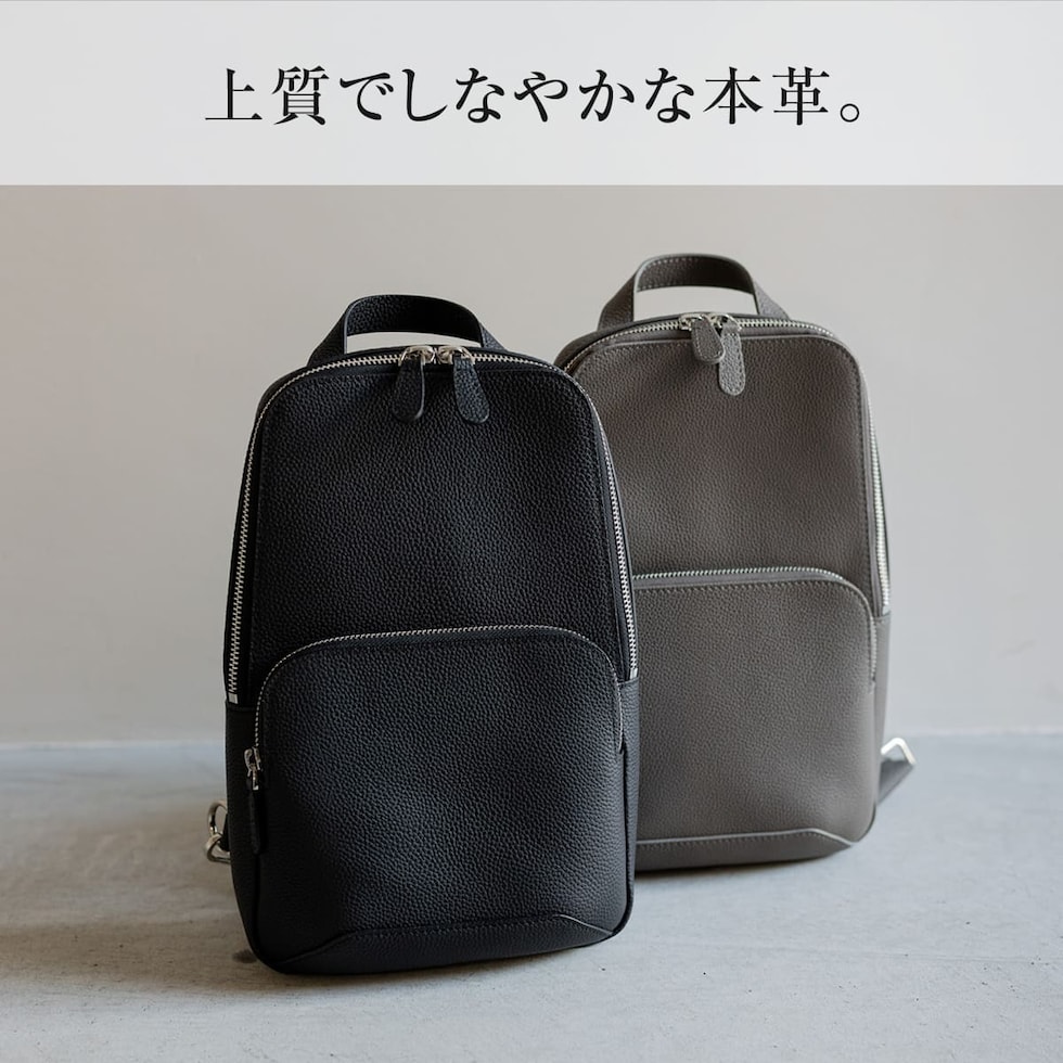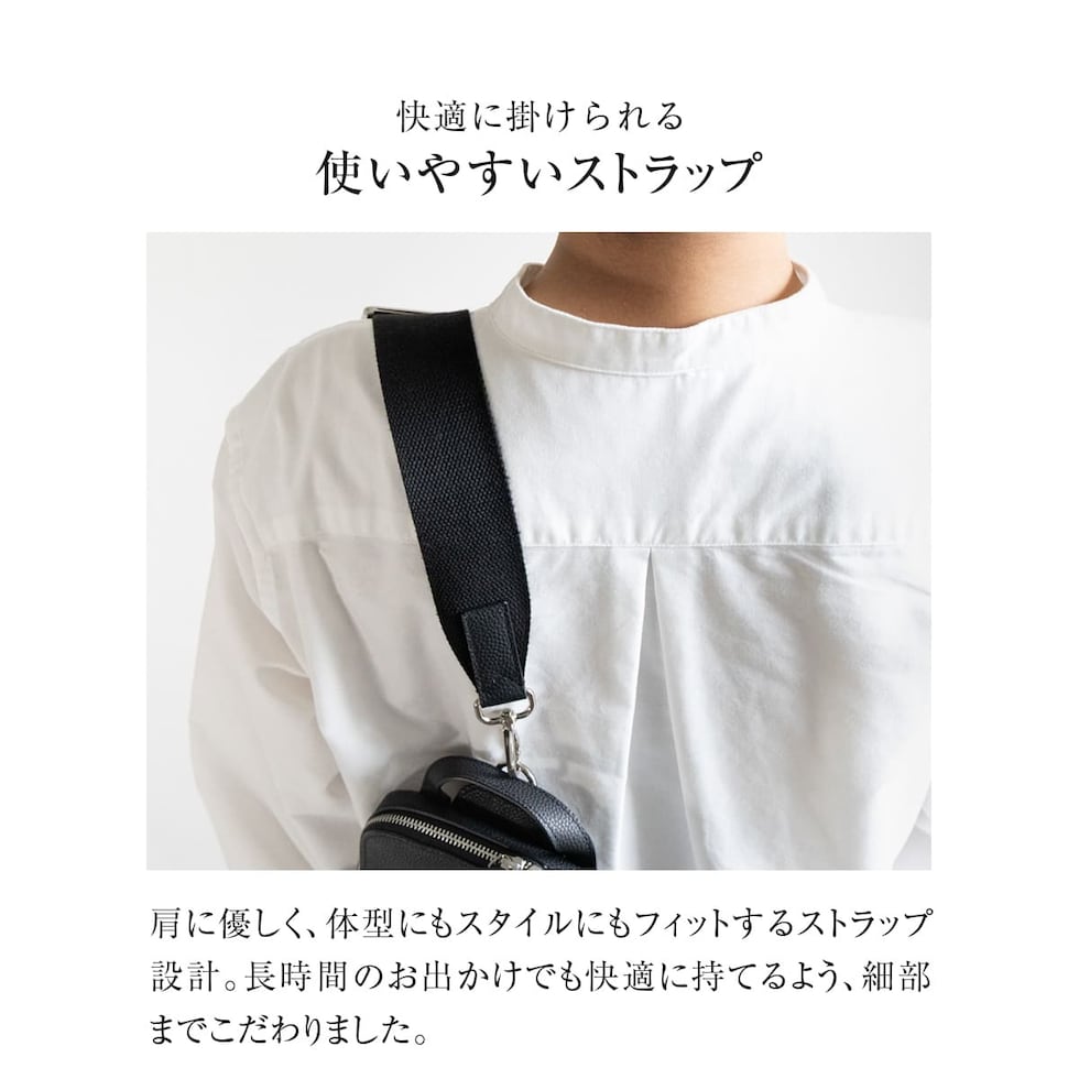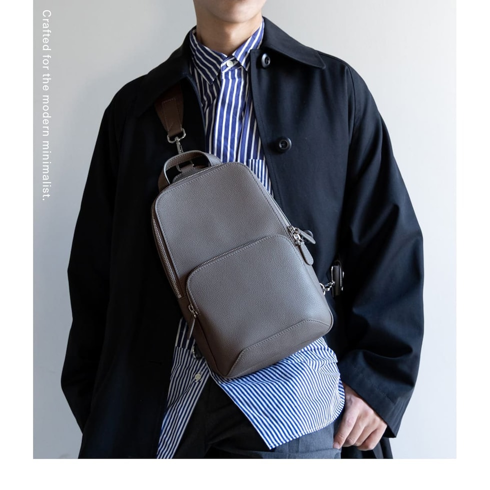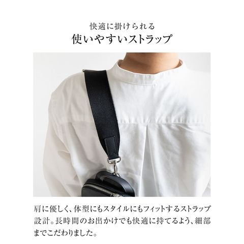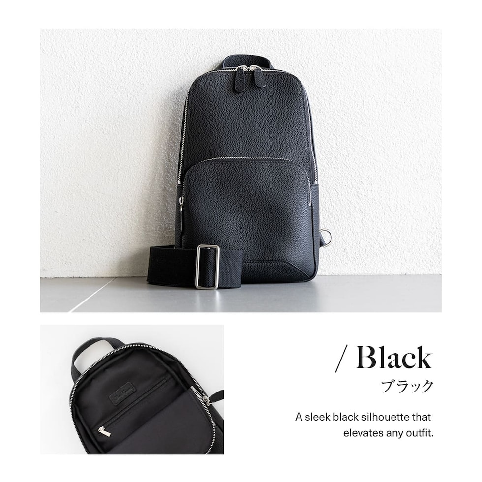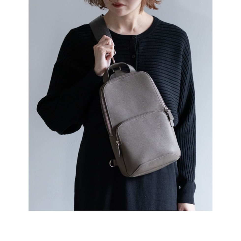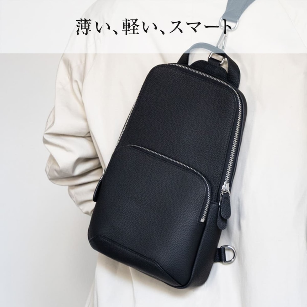 細やかなシボ感の上質レザーで仕上げた、大人のためのボディバッグです。ストラップで肩掛け、斜め掛けに。ハンドルでさらっと手持ちスタイルにも。洗練されたデザインが、カジュアルになりがちなボディバッグを上品な装いに格上げします。