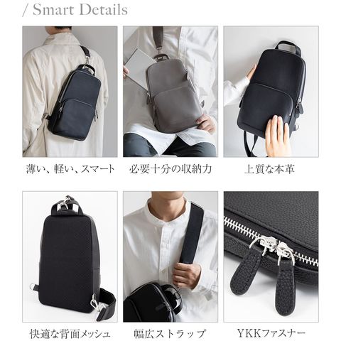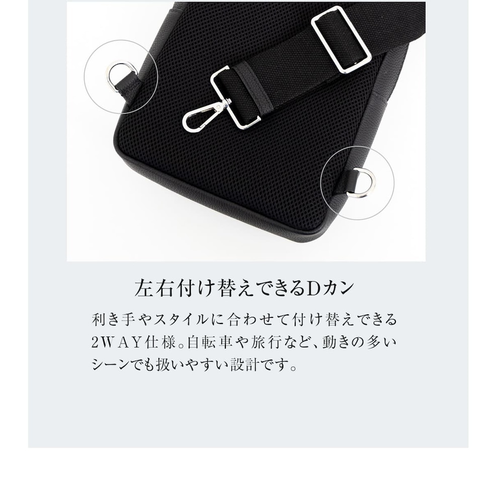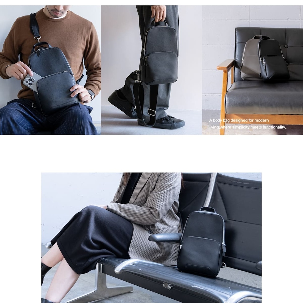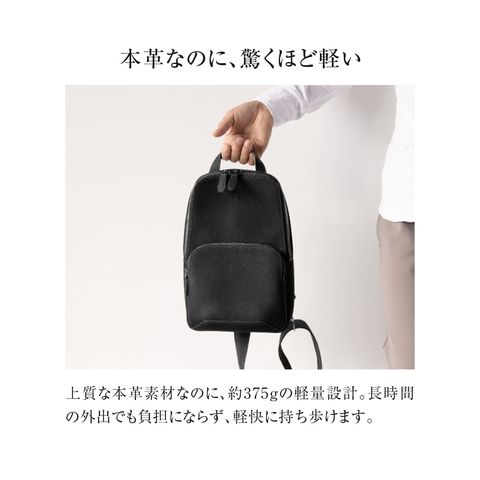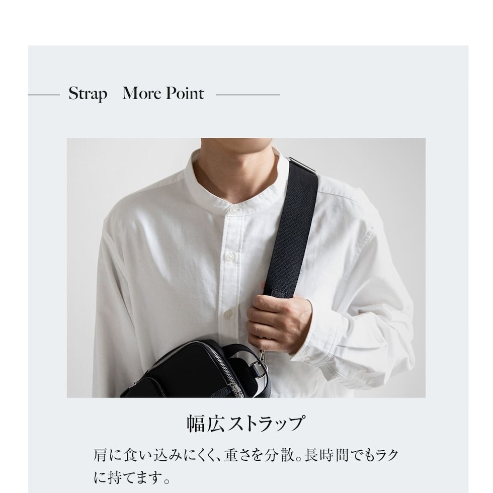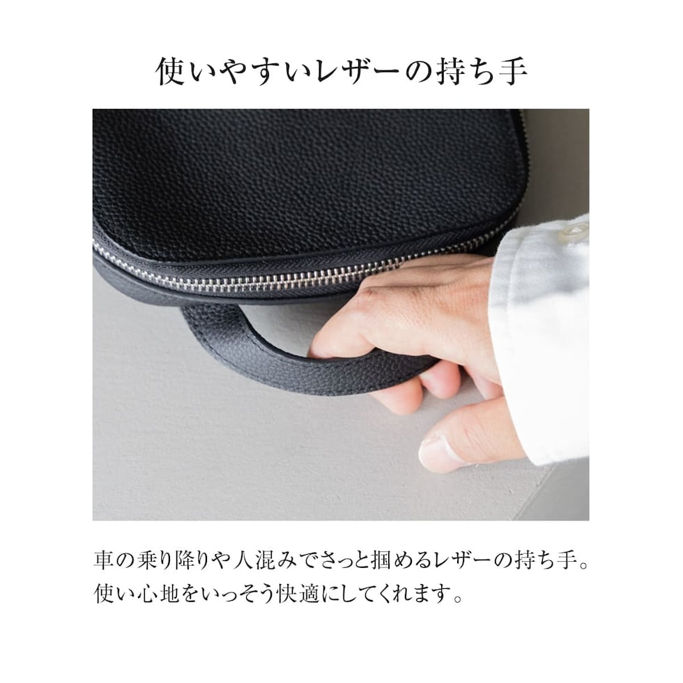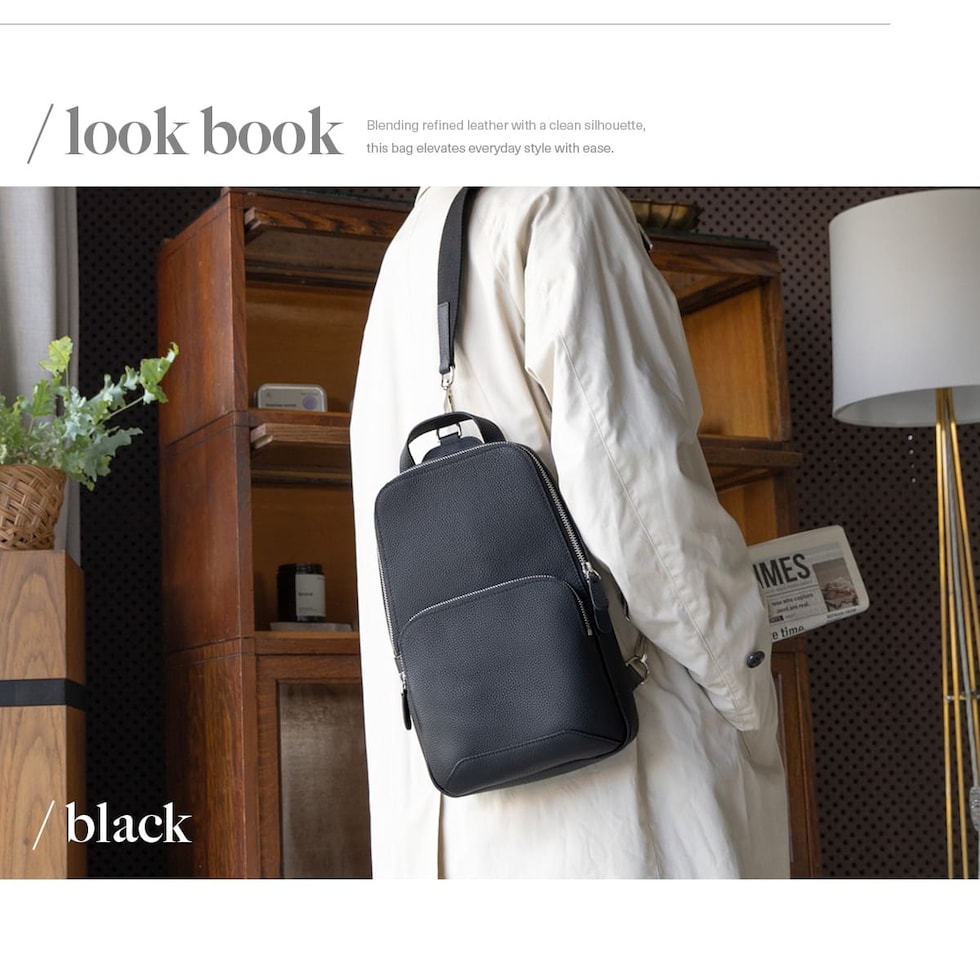 細やかなシボ感の上質レザーで仕上げた、大人のためのボディバッグです。ストラップで肩掛け、斜め掛けに。ハンドルでさらっと手持ちスタイルにも。洗練されたデザインが、カジュアルになりがちなボディバッグを上品な装いに格上げします。