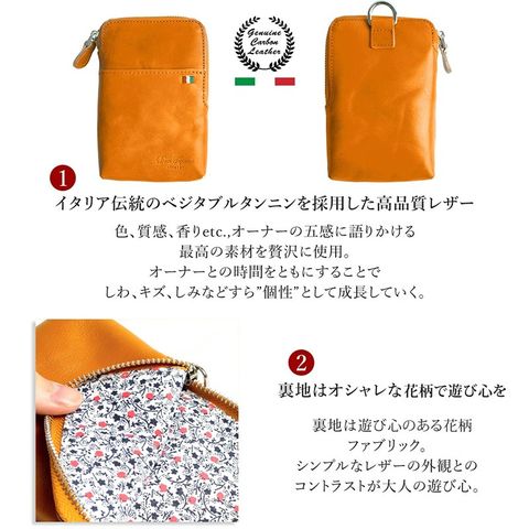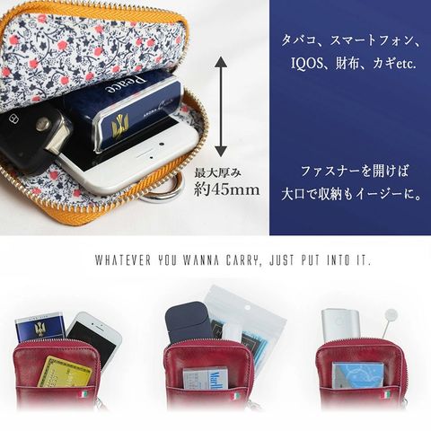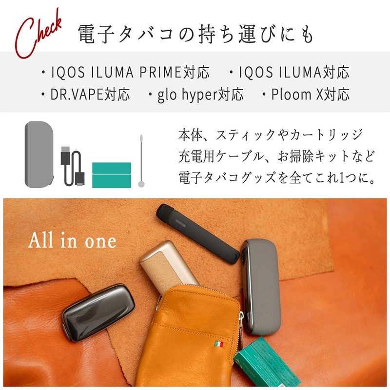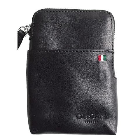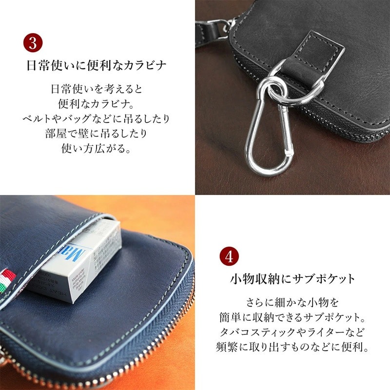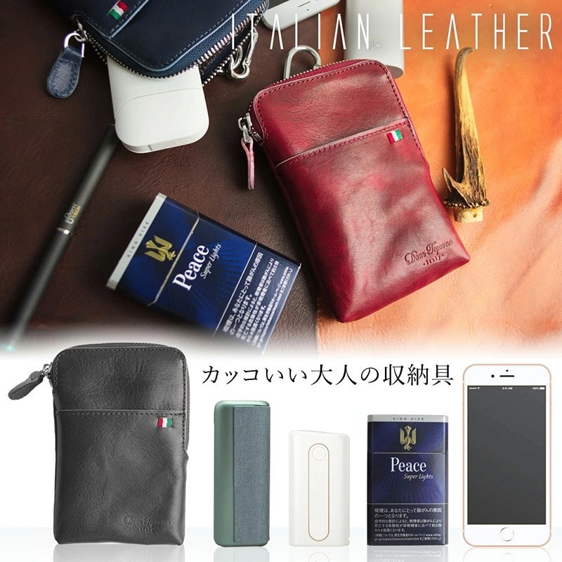 Dom Teporna Italy イタリアンレザーのスマホポーチ カラビナ付き 電子たばこポーチ black/ブラック