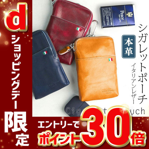 【12月10日限定ポイント30倍】Dom Teporna Italy イタリアンレザーのスマホポーチ カラビナ付き 電子たばこポーチ green/グリーン