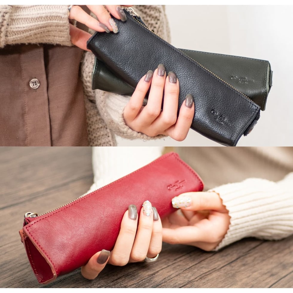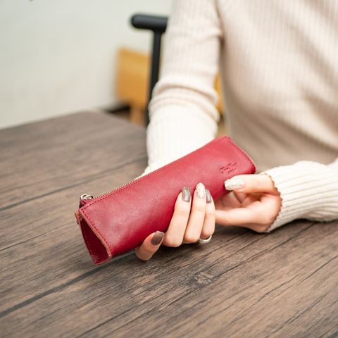Dom Teporna Italy イタリアンレザーの本革ペンケース 柔らかい革 red/レッド