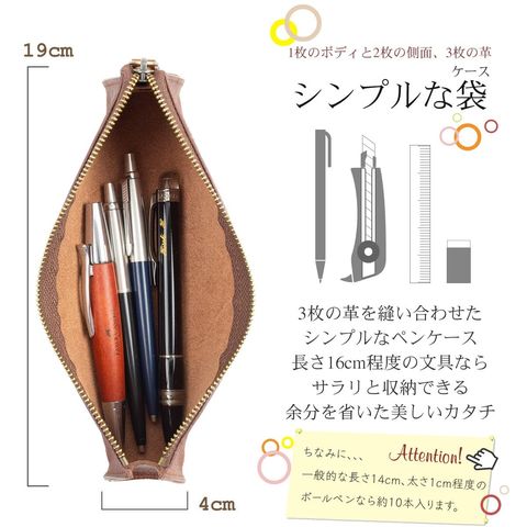 長さ約19cm 幅は約4cmのシンプルなペンケース