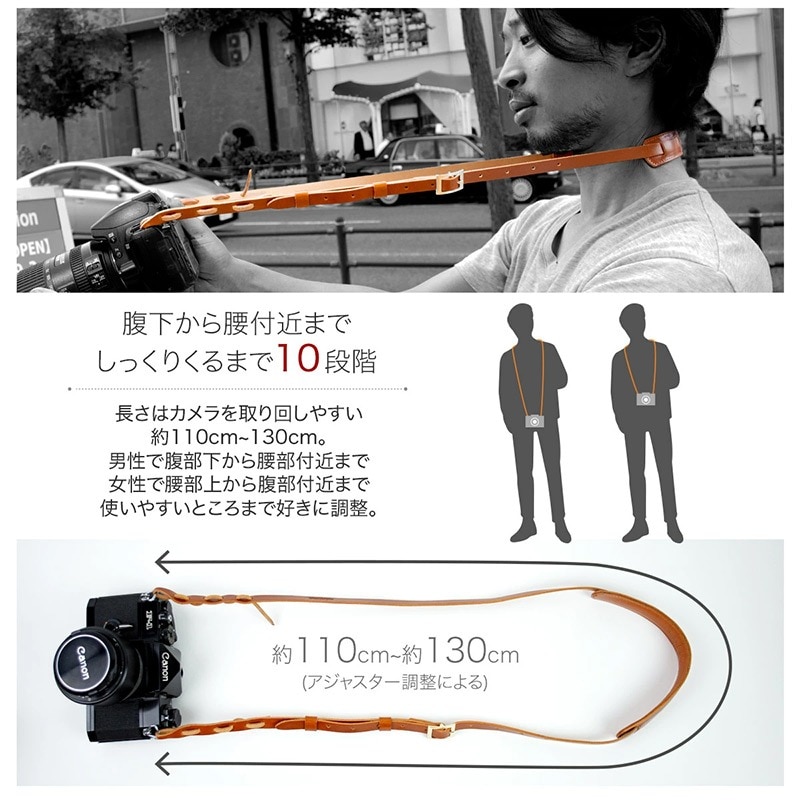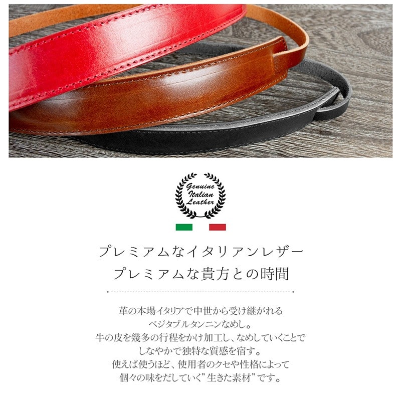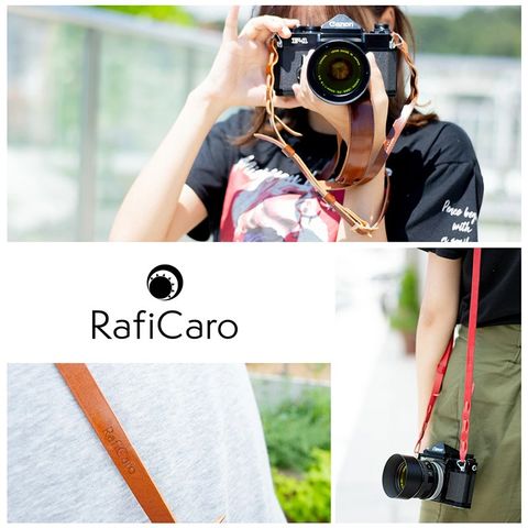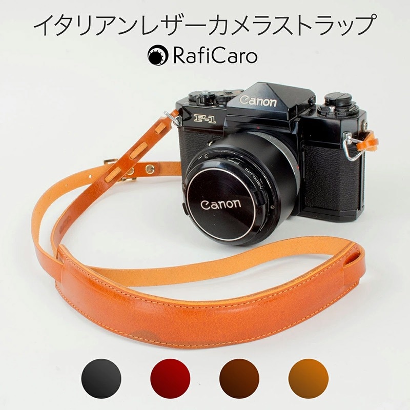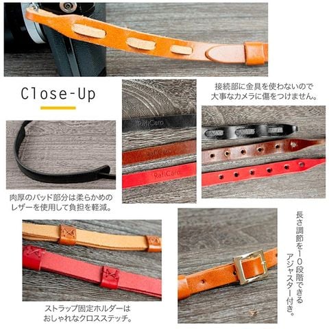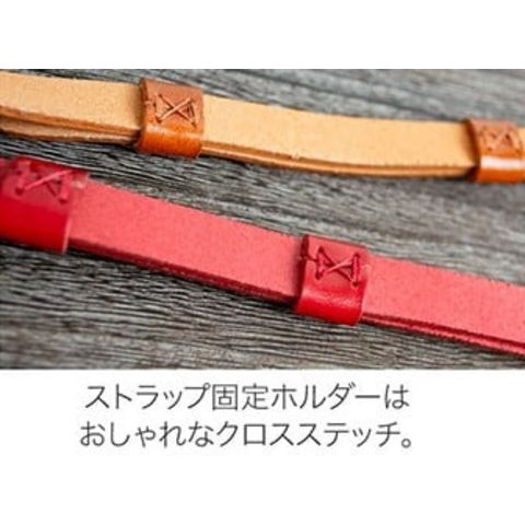 RafiCaro カメラストラップ 本革 イタリアンレザー 110~130cm調整可能 red/レッド