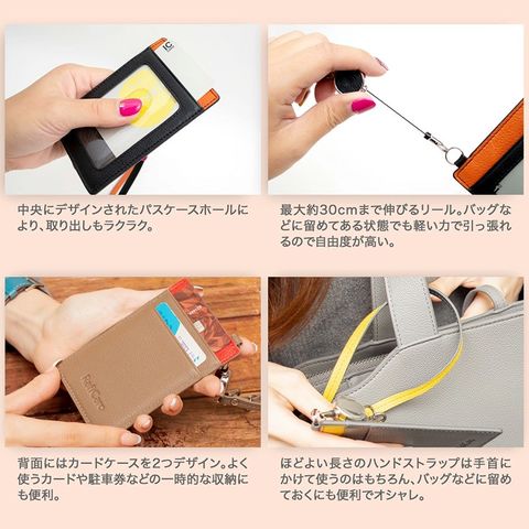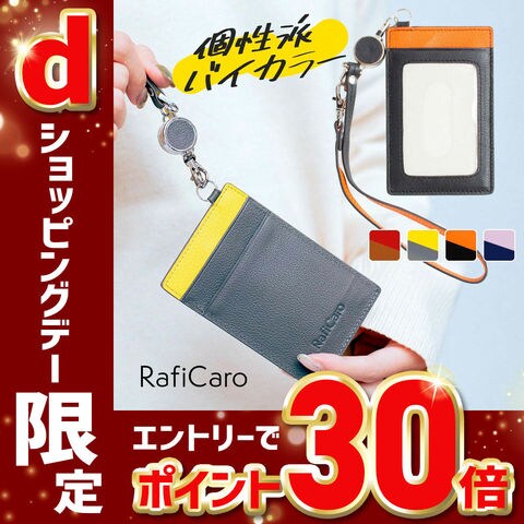 【12月10日限定ポイント30倍】RafiCaro リールストラップ付きパスケース 牛革 ポケット3つ 定期入れ navypink/ネイビー×ピンク