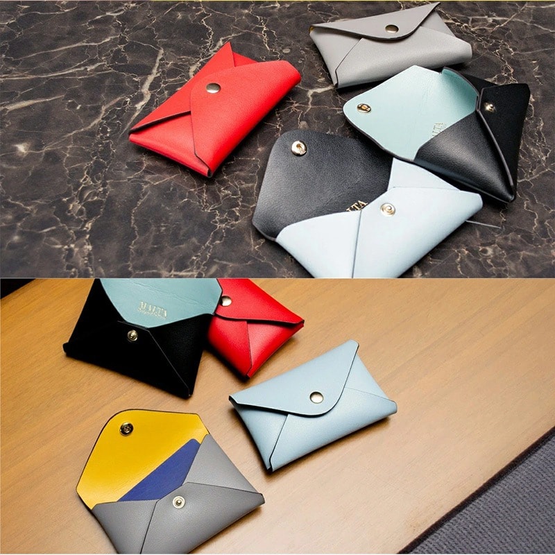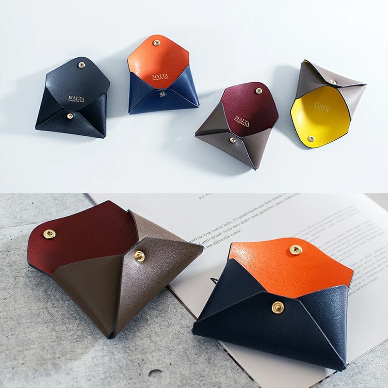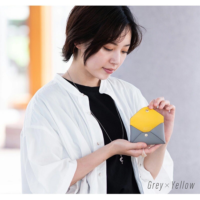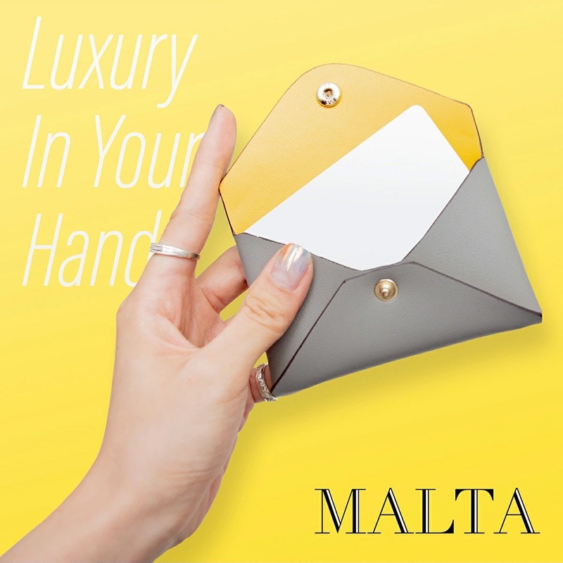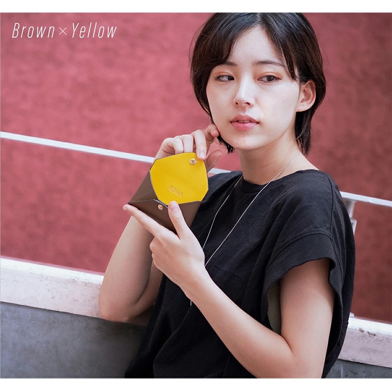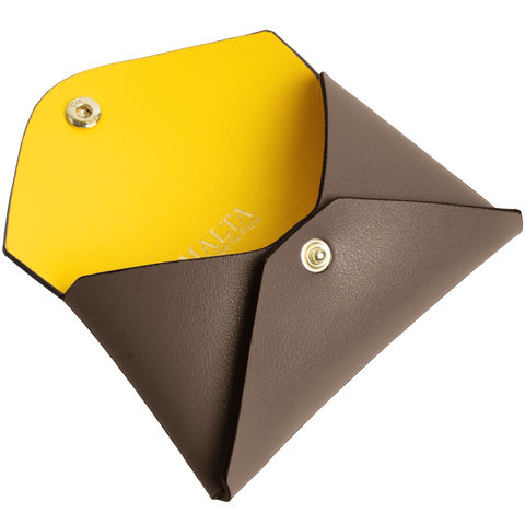 MALTA 一枚生地の牛革カードケース brownyellow/ブラウン×イエロー
