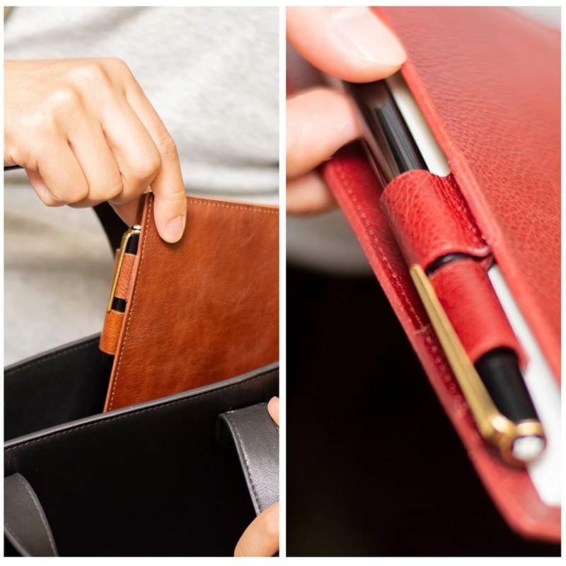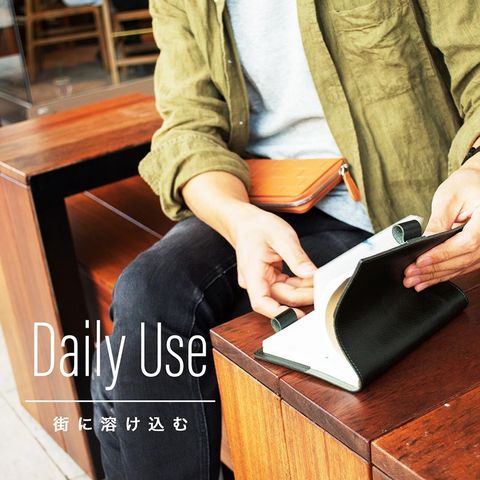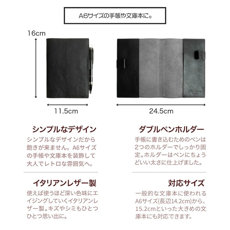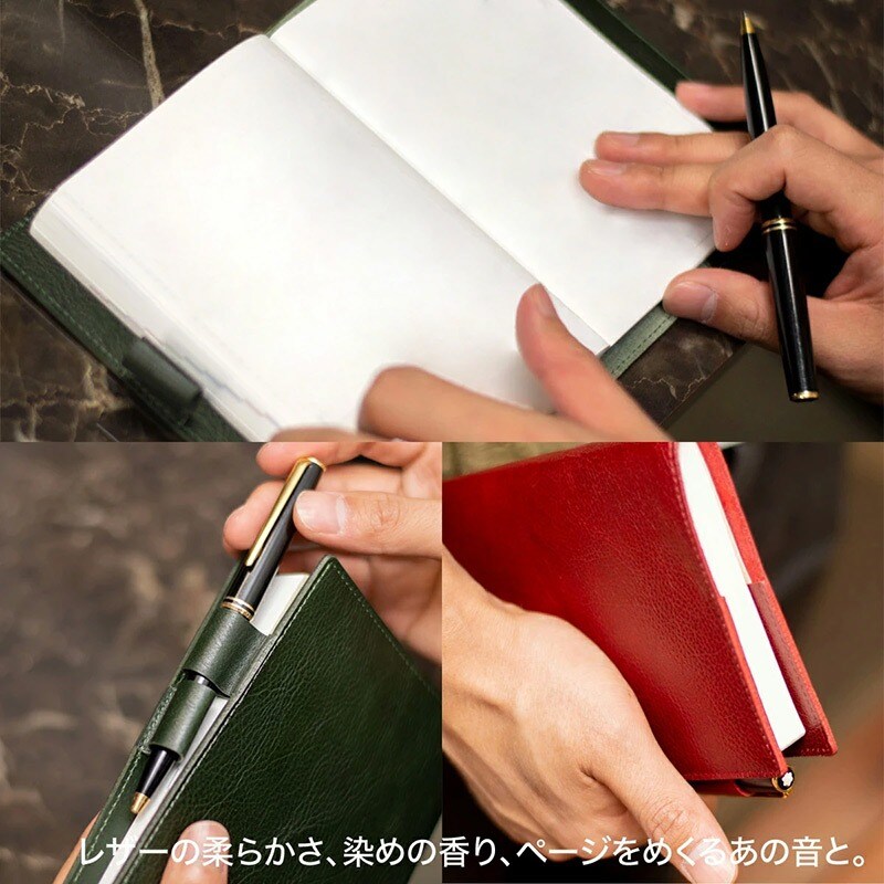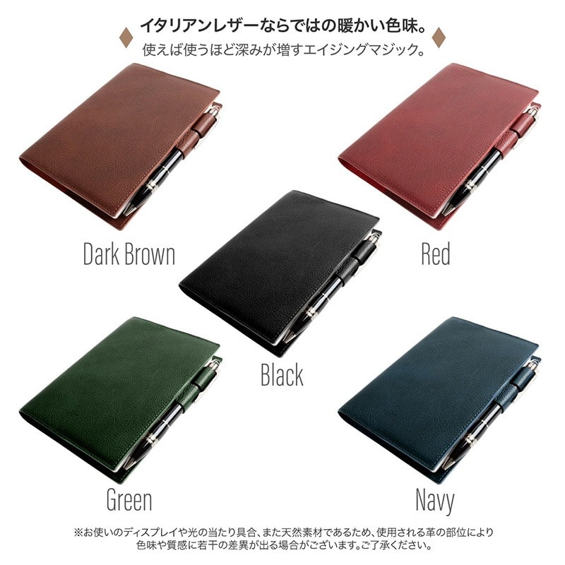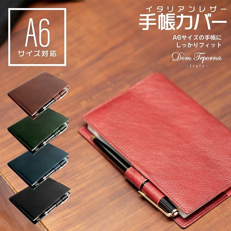 Dom Teporna Italy 手帳カバー A6サイズ 厚さ調整可能 ペンホルダー付き 本革 green/グリーン
