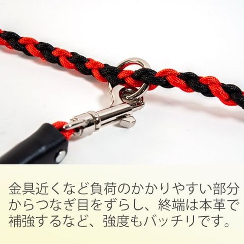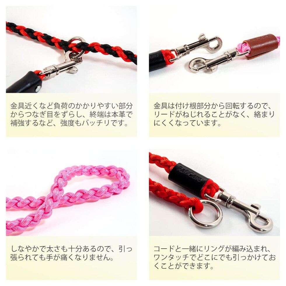 ナイロンを編み込んで仕上げられたリードは、丈夫でしなやか。
