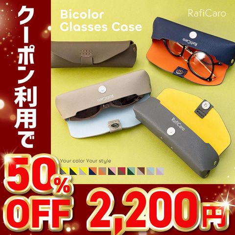 【50%OFFクーポン2,200円!】RafiCaro 牛革メガネケース バイカラー navyorange/ネイビー×オレンジ
