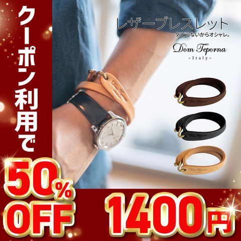 【50%OFFクーポン1,400円!】Dom Teporna Italy 本革ブレスレット イタリアンレザー black/ブラック