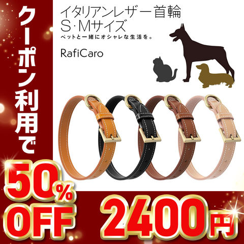 【50%OFFクーポン2,400円!】RafiCaro 小型~中型犬用 首輪 本革 イタリアンレザー brown/ブラウン M