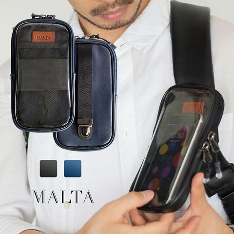 MALTA スマホポーチ 牛革 リュックのベルトに付けるポーチ black/ブラック