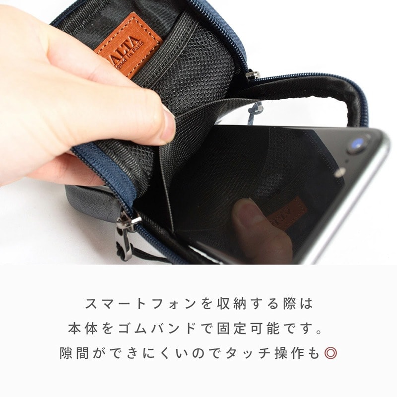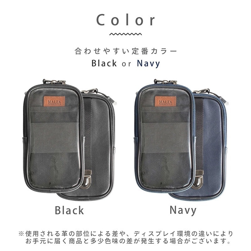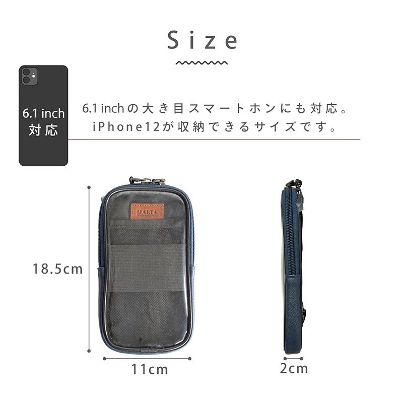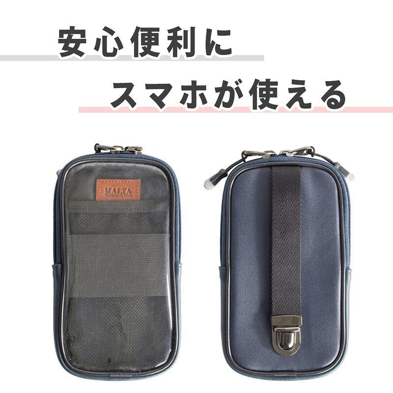 MALTA スマホポーチ 牛革 リュックのベルトに付けるポーチ navy/ネイビー
